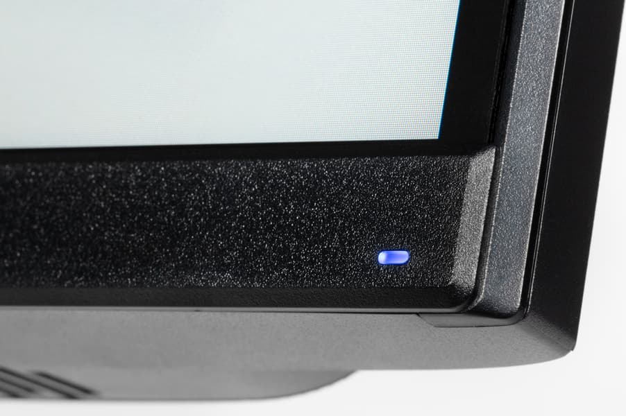 Индикатор питания неярко светится синим при работе, красным в режиме ожидания, и не горит, если монитор условно выключен. Включается монитор нажатием на джойстик, а выключается — длительным нажатием на джойстик. Когда монитор включен и на экране нет меню, то при отклонении джойстика вверх, вниз или влево на экран выводится ползунок или список/короткое меню трех настроек, которые пользователь назначил на эти действия, выбрав из короткого списка вариантов.