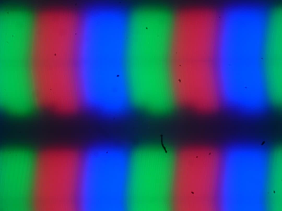 Изображение структуры пикселей из-за матовой поверхности размыто, но характерную для IPS структуру распознать можно (черные точки — это пыль на матрице фотоаппарата):