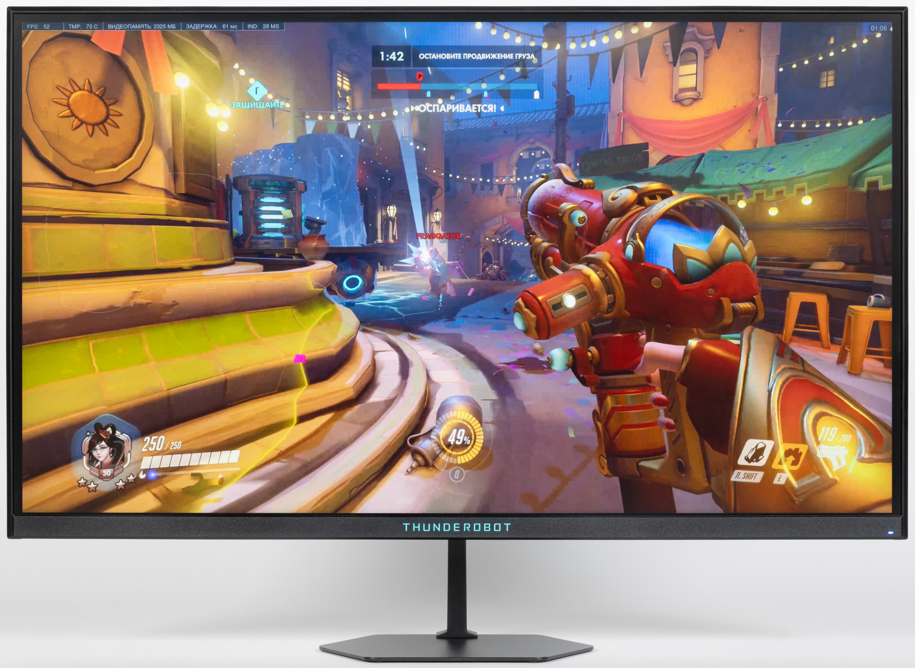 Thunderobot LQ27F180 — это игровой монитор довольно высокого класса, общую оценку качества можно снизить только из-за простой конструкции подставки. К его особенностям относятся большой экран с высоким разрешением и строгий дизайн. Есть поддержка частоты обновления до 180 Гц включительно, AMD FreeSync и Nvidia G-Sync Compatible. Монитор отлично подходит для любых, даже самых динамичных игр.