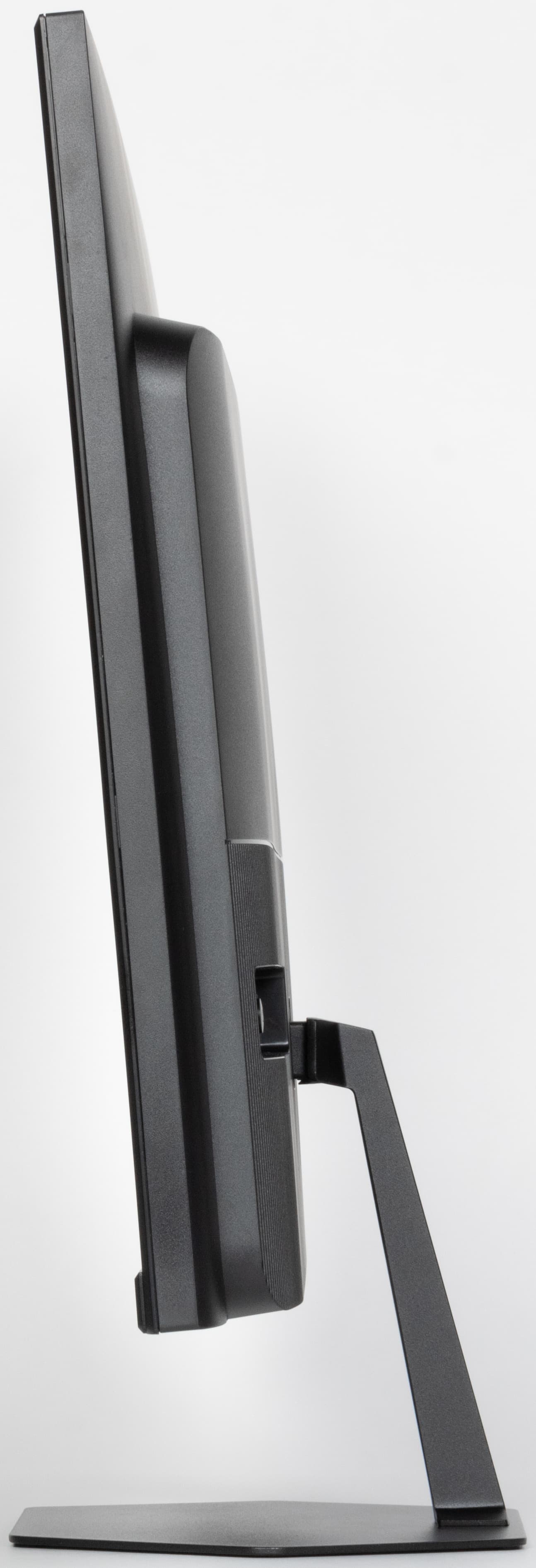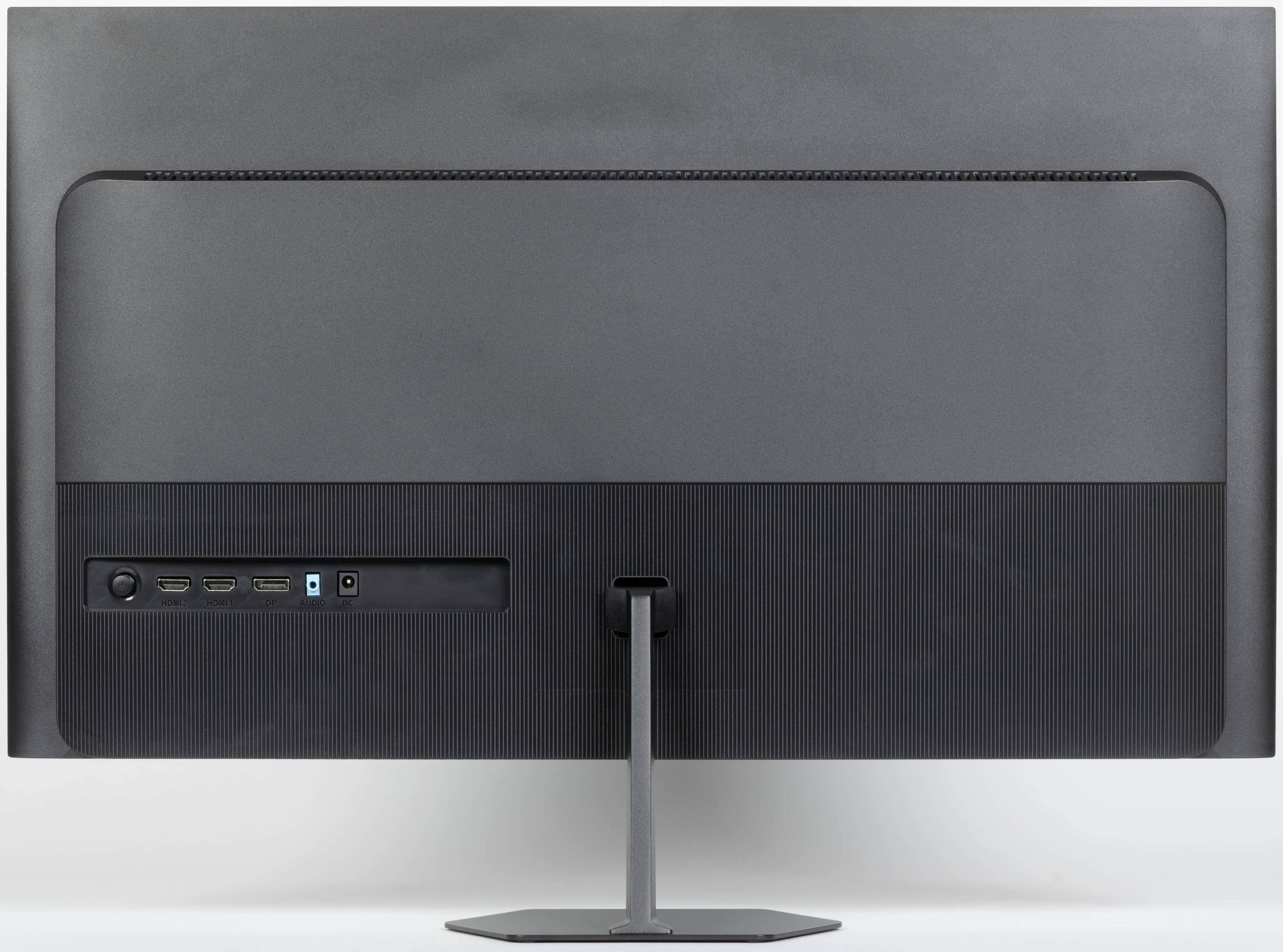 Дизайн строгий, игровую направленность в явном виде ничего не выдает. Панели блока экрана изготовлены из черного пластика с матовой поверхностью. На задней панели в нижней части есть рельеф в виде вертикальных ребер. Внешняя поверхность матрицы черная, полуматовая (зеркальность хорошо выражена), внешний слой матрицы жесткий. Спереди экран выглядит как монолитная поверхность, ограниченная снизу неширокой планкой, а по периметру — узкой окантовкой. Выведя изображение на экран, можно увидеть, что на самом деле между внешними границами экрана и собственно областью отображения есть неширокие поля.
