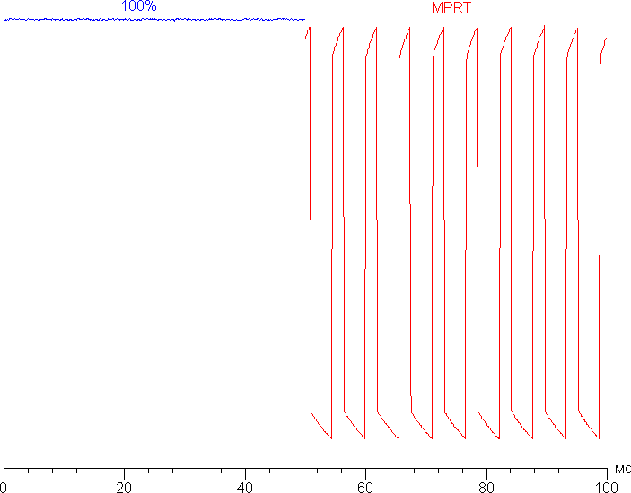 Есть режим со вставкой темного кадра (черным он в данном случае не является) с названием MPRT. Зависимости яркости (вертикальная ось) от времени (горизонтальная ось) когда эта функция включена приведена на рисунке ниже.
