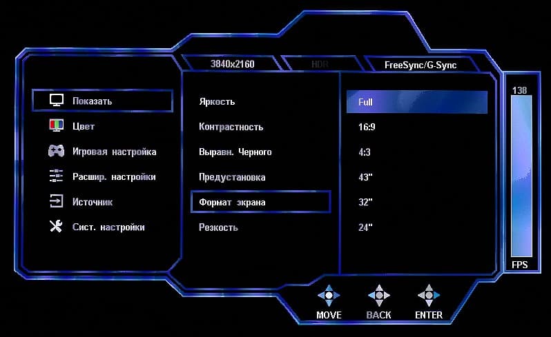 Основных режимов геометрической трансформации два: принудительное растягивание картинки на всю площадь экрана (Full, вариант 16:9 делает тоже самое) или вывод в формате 4:3. Так, есть имитация вывода в формате 16:9 для диагоналей 43 (работает некорректно), 32 и 24 дюйма.