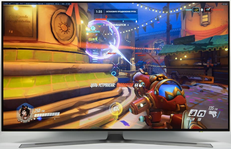 При подключении к компьютеру по DisplayPort и по HDMI поддерживалось разрешение до 3840×2160 при 12 бит на цвет и 138 Гц кадровой частоты на вход (поддержку 138 Гц нужно включать в меню), и вывод изображения на экран также осуществлялся с этой частотой. При таком разрешении и частоте обновления поддерживается HDR. В случае USB-C частота, видимо, ограничена на уровне 120 Гц.