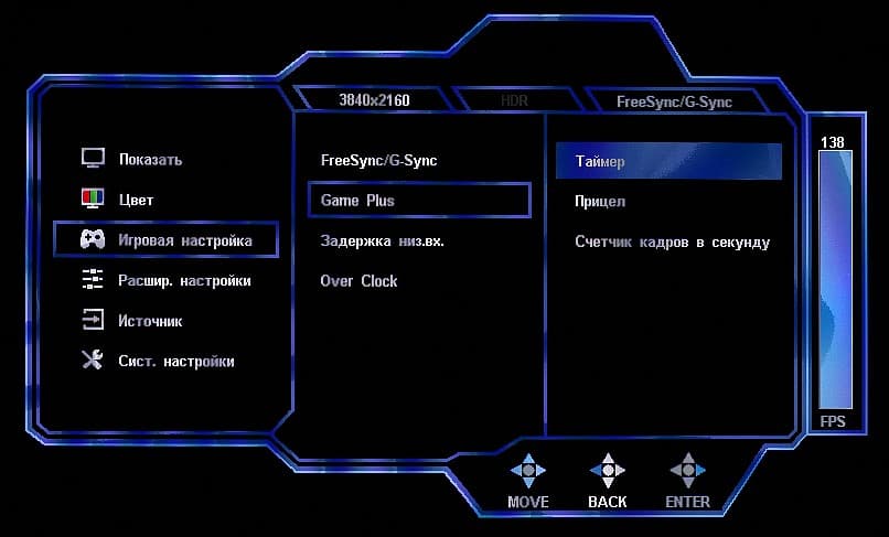 Кириллический шрифт достаточно ровный и читаемый. Качество перевода на русский язык приемлемое, но значение «вкл.» и «выкл.» перепутано. Из дополнительных возможностей в наборе Game Plus присутствуют три «геймерские» функции: вывод на экране прицела выбранной формы и цвета, таймера с обратным отсчетом от фиксированных значений и счетчика частоты кадров, но одновременно выводится только что-то одно.