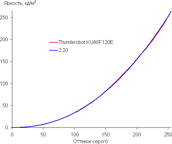 Аппроксимация полученной гамма-кривой дала показатель 2,20, что равно стандартному значению 2,2, при этом реальная гамма-кривая мало отклоняется от аппроксимирующей степенной функции: