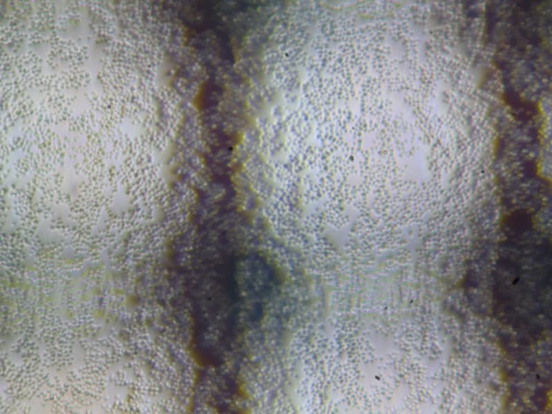 Фокусировка на поверхности экрана (фото справа выше) выявила хаотично расположенные микродефекты поверхности, отвечающие собственно за матовые свойства. Зерно этих дефектов в несколько раз меньше размеров субпикселей (масштаб этих двух фотографий одинаковый), поэтому фокусировка на микродефектах и «перескок» фокуса по субпикселям при изменении угла зрения выражены слабо, из-за этого нет и «кристаллического» эффекта.