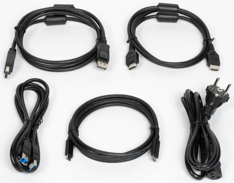 К монитору прилагается полный комплект кабелей, качество которых с виду хорошее.