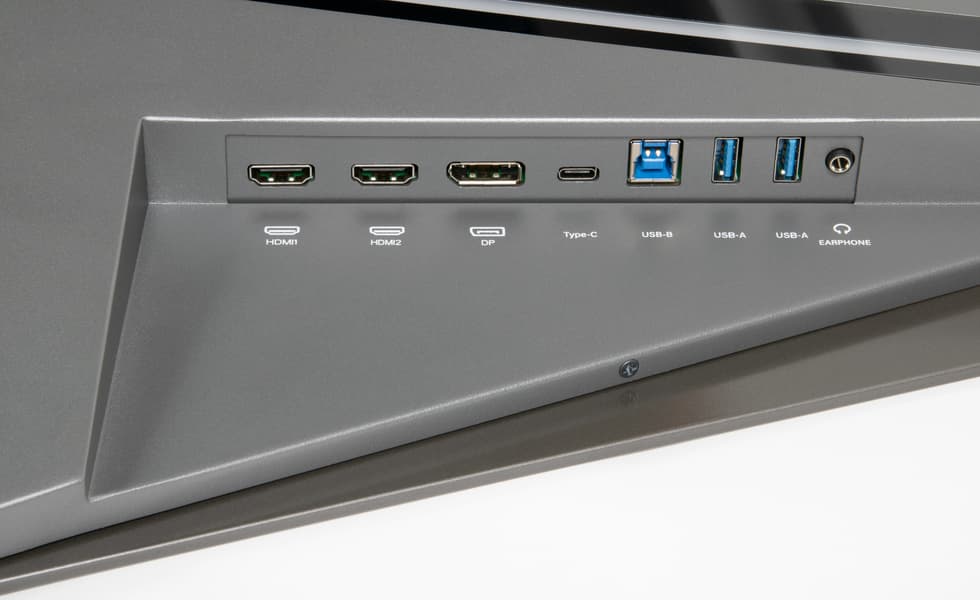 Для ввода видеосигнала монитор оснащен тремя цифровыми входами в полноразмерном варианте — DisplayPort и пара HDMI, — дополненные входом USB-C. Выбор входа осуществляется в основном меню установок или в меню быстрого доступа. Есть отключаемая функция автоматического поиска сигнала на входах. Цифровые аудиосигналы, передаваемые перечисленные выше входы, после преобразования в аналоговый вид выводятся на встроенные громкоговорители и на выход на наушники.