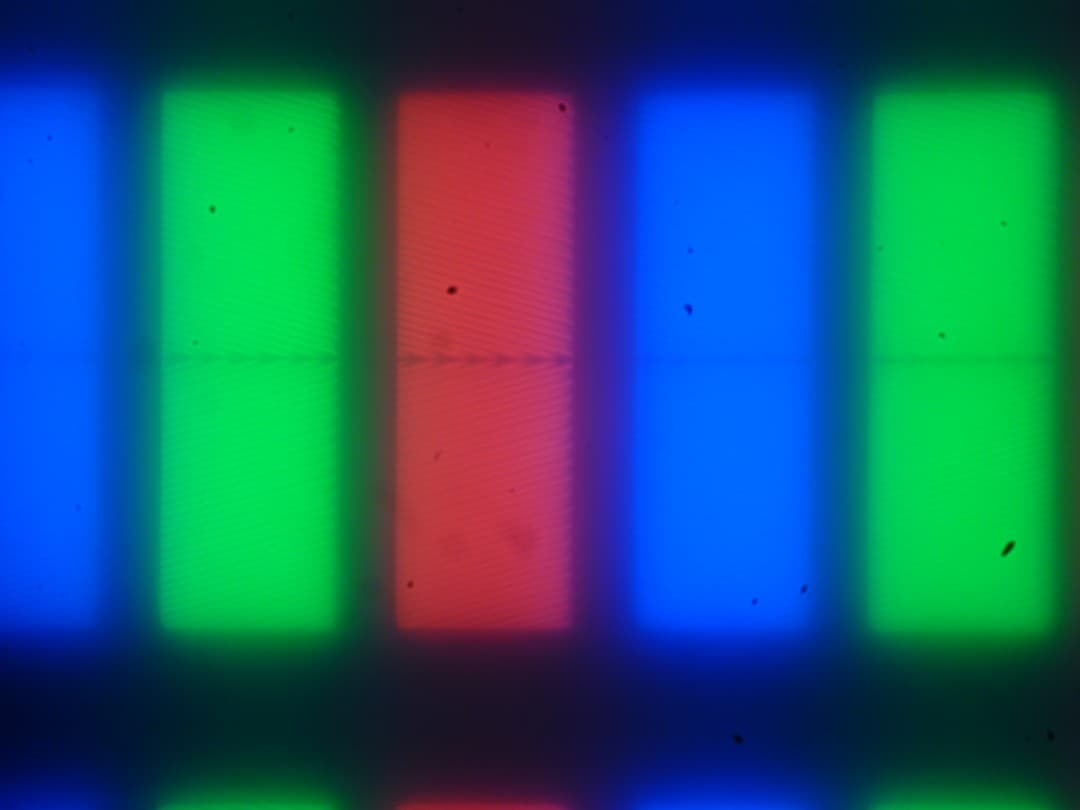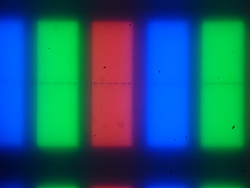 Изображение структуры пикселей из-за матовой поверхности размыто, но характерную для IPS структуру распознать можно (черные точки — это пыль на матрице фотоаппарата):