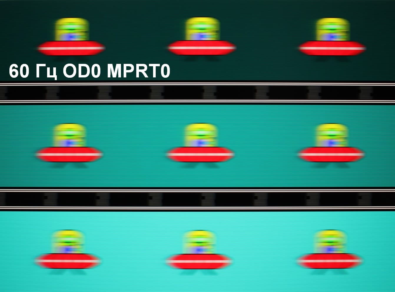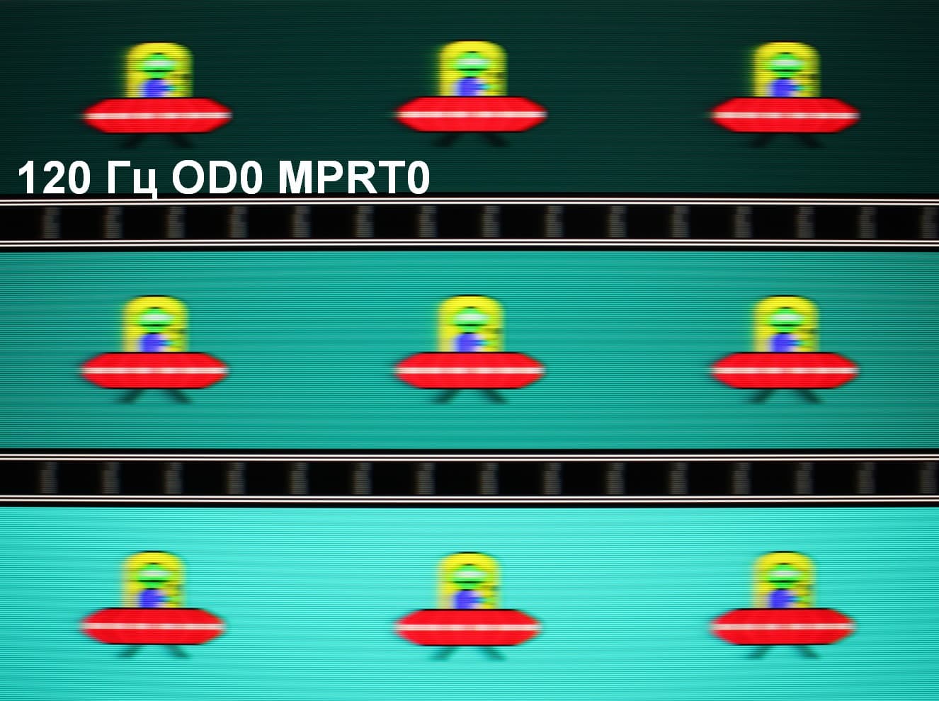 Видно, что при прочих равных условиях четкость изображения повышается по мере роста частоты обновления и при разгоне. Включение MPRT увеличивает четкость вплоть до одного пикселя по горизонтали, но объекты в движении имеют остаточные копии, что снижает положительный эффект.