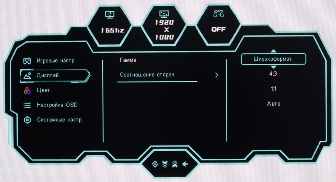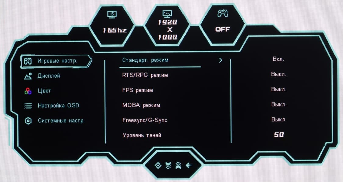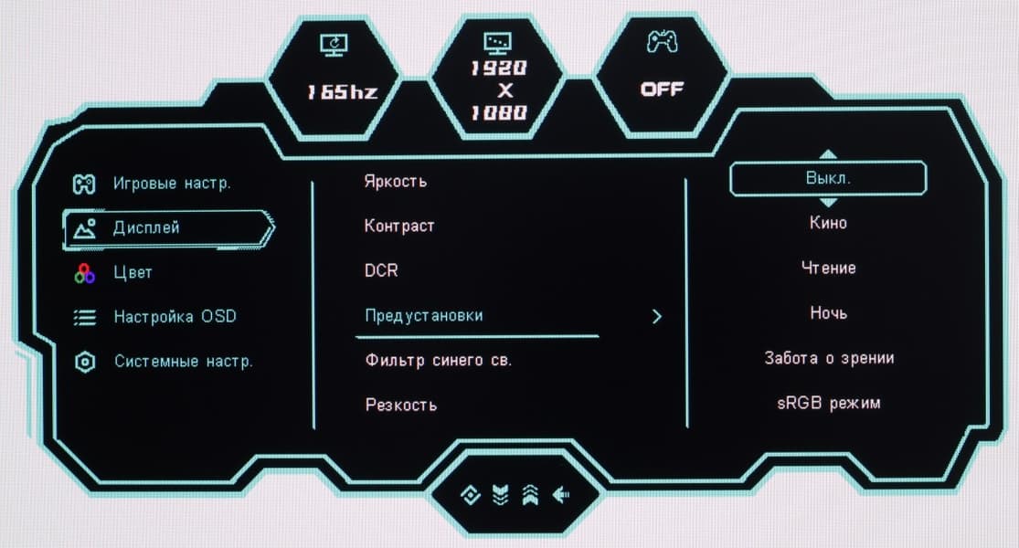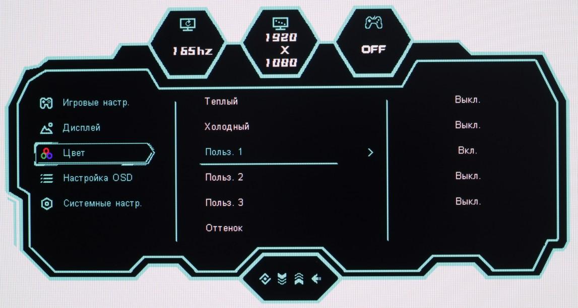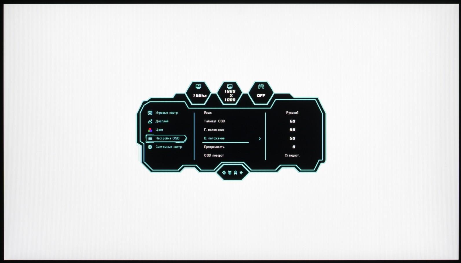 Настроек, влияющих на яркостный и цветовой баланс, не очень много, что для игрового монитора ожидаемо.