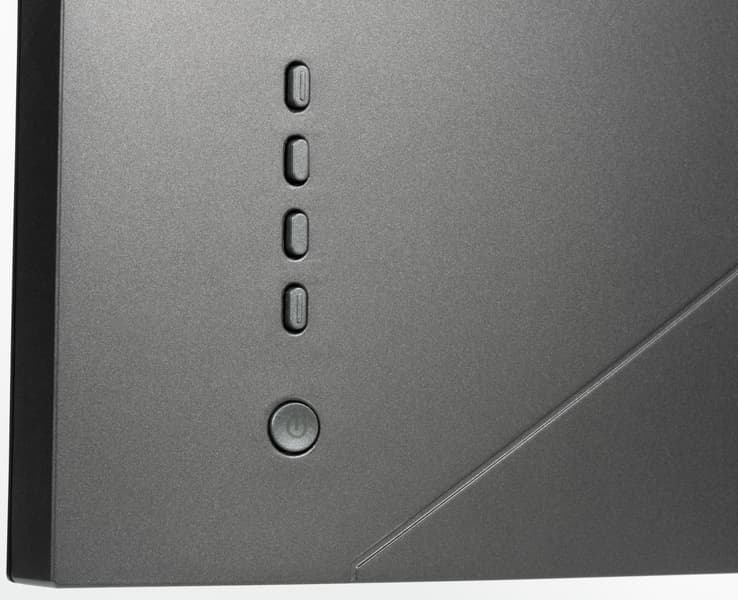 На задней панели близко к краю под правую руку вертикально в ряд расположены пять механических кнопок управления. До кнопок можно добраться как справа, так и снизу. Второй вариант позволит использовать установленные впритык друг к другу мониторы.