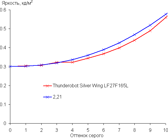Рост прироста яркости весьма равномерный, и почти каждый следующий оттенок значимо ярче предыдущего, за исключением пары оттенков в тенях (3 и 4):