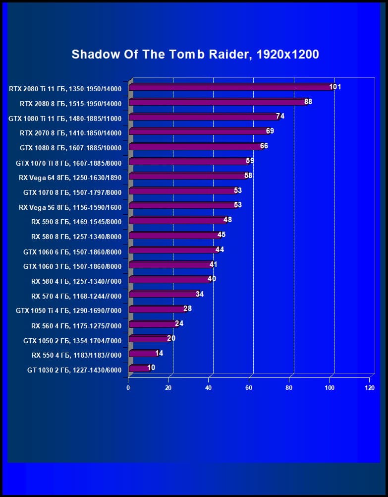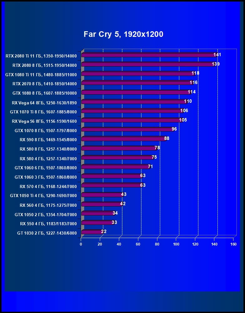 Итак, RTX 2070 соперничает с GTX 1070 Ti и даже GTX 1080, это как бы промежуточный вариант для разрешений между 2560×1440 и 1920×1080(1200): в части игр он обеспечит приличную играбельность в разрешении 2560×1440 с максимальными настройками графики, в других комфортно играть на максимальных настройках можно будет лишь в разрешении Full HD. Владельцам 4K-мониторов надо иметь в виду, что RTX 2070 обеспечит хорошую скорость в этом разрешении только на средних настройках качества графики.