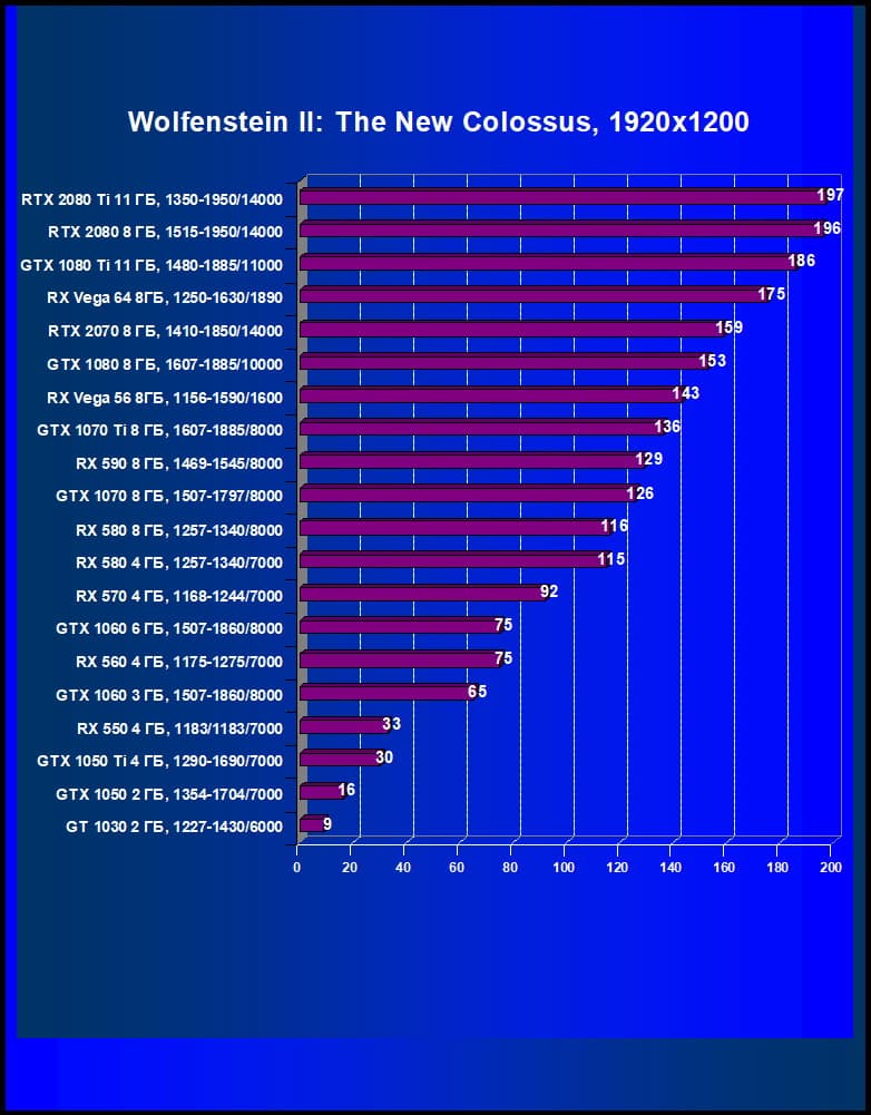 Теперь пройдемся по разрешениям без учета ценового фактора. Чистая производительность. Картинка если и отличается от той, что была месяцем раньше, то очень мало (изменения коснулись лишь 1920×1200 из-за смены процессора в тестовом стенде).