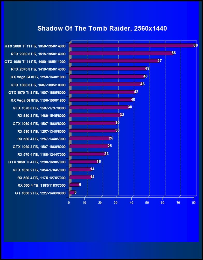 Да, RTX 2080 — это тоже топовый, можно даже сказать премиальный ускоритель. Он обеспечивает безусловный комфорт во всех играх в разрешении 2560×1440 на максимальных настройках качества, а многие игры (кроме очень сложных по графике, типа Shadow of the Tomb Raider) пойдут и в разрешении 4К без понижения настроек, но все же на 4К нацелен RTX 2080 Ti.