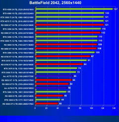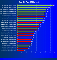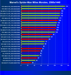 Составлен отдельный рейтинг полезности для разрешения 2560×1440. Взяты все ускорители, которые имеют средний FPS в играх в данном разрешении не ниже 50 (примерно). Остальные, следовательно, для этого разрешения не годятся и убраны из рейтинга (при этом нормирование результатов все равно идет по Radeon RX 6500 XT). Лидером стал RX 6700 XT 12 ГБ из-за достаточного объема памяти для такого разрешения и оптимальной цены. На втором месте оказался RTX 3060 Ti 8 ГБ, который немного дешевле, но менее производителен в данном разрешении, однако тоже позволит поиграть в современные игры в разрешении 2.5K. В играх с трассировкой лучей ситуация обратная: RTX 3060 Ti 8 ГБ за свою цену — более актуальный выбор, значительно превосходящий в этом случае RX 6700 XT 12 ГБ. Поэтому RTX 3060 Ti 8 ГБ становится лучшей картой на январь.