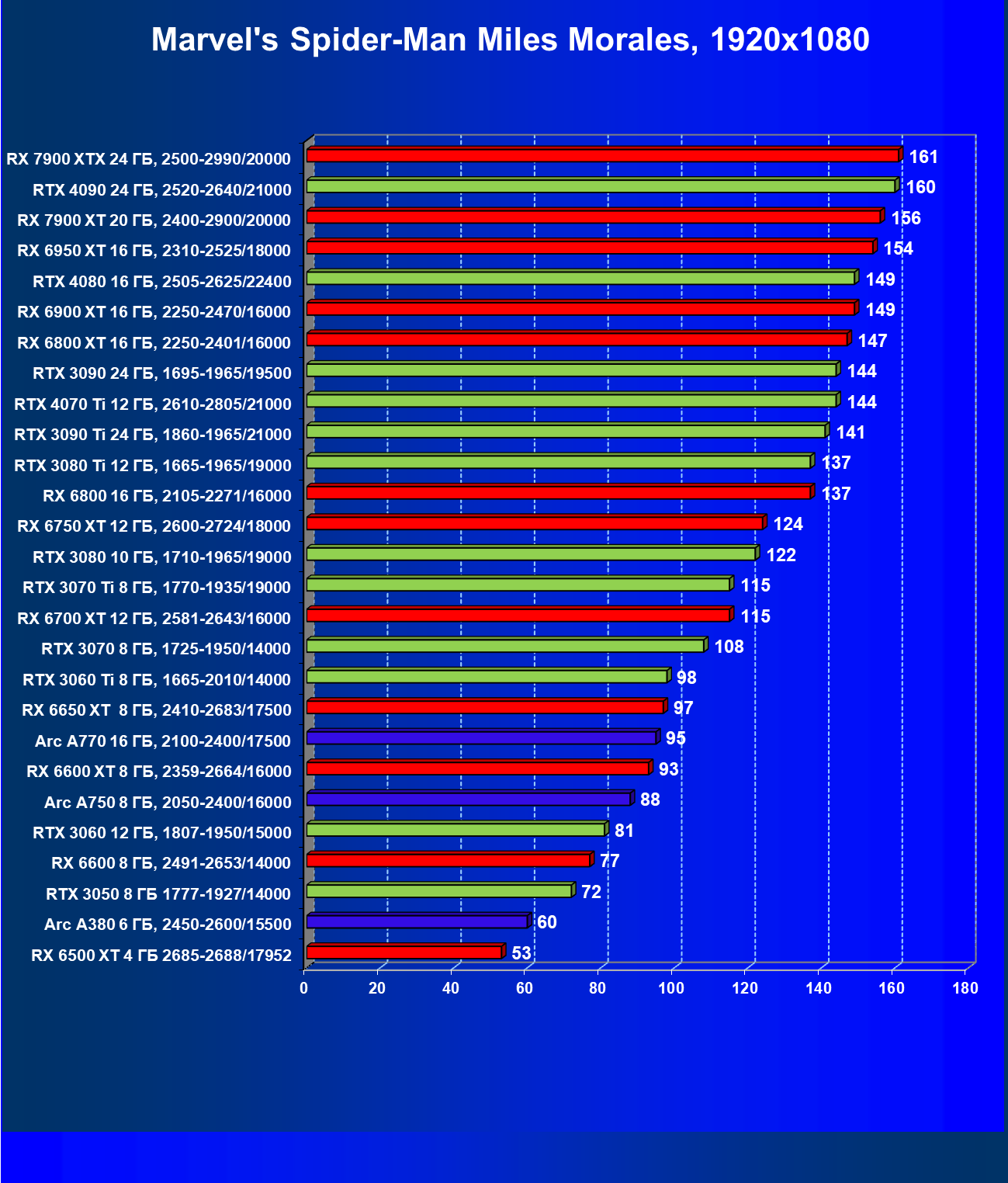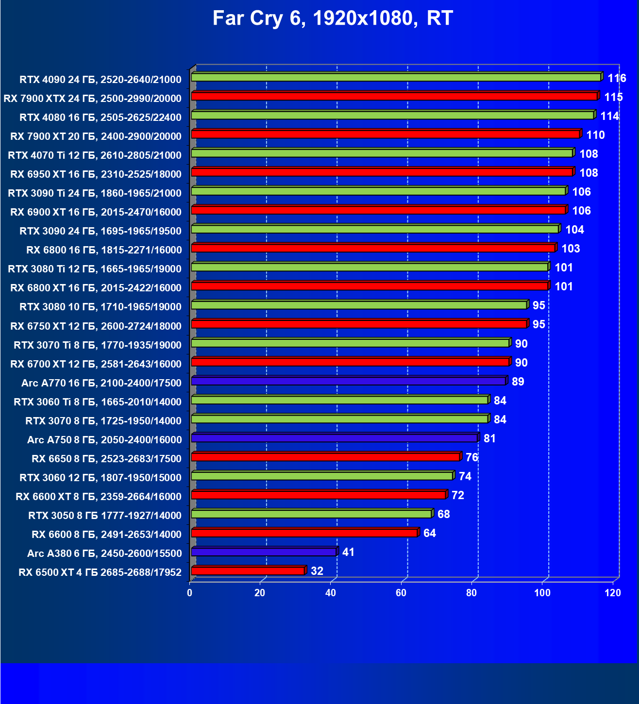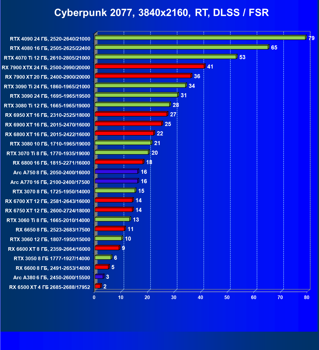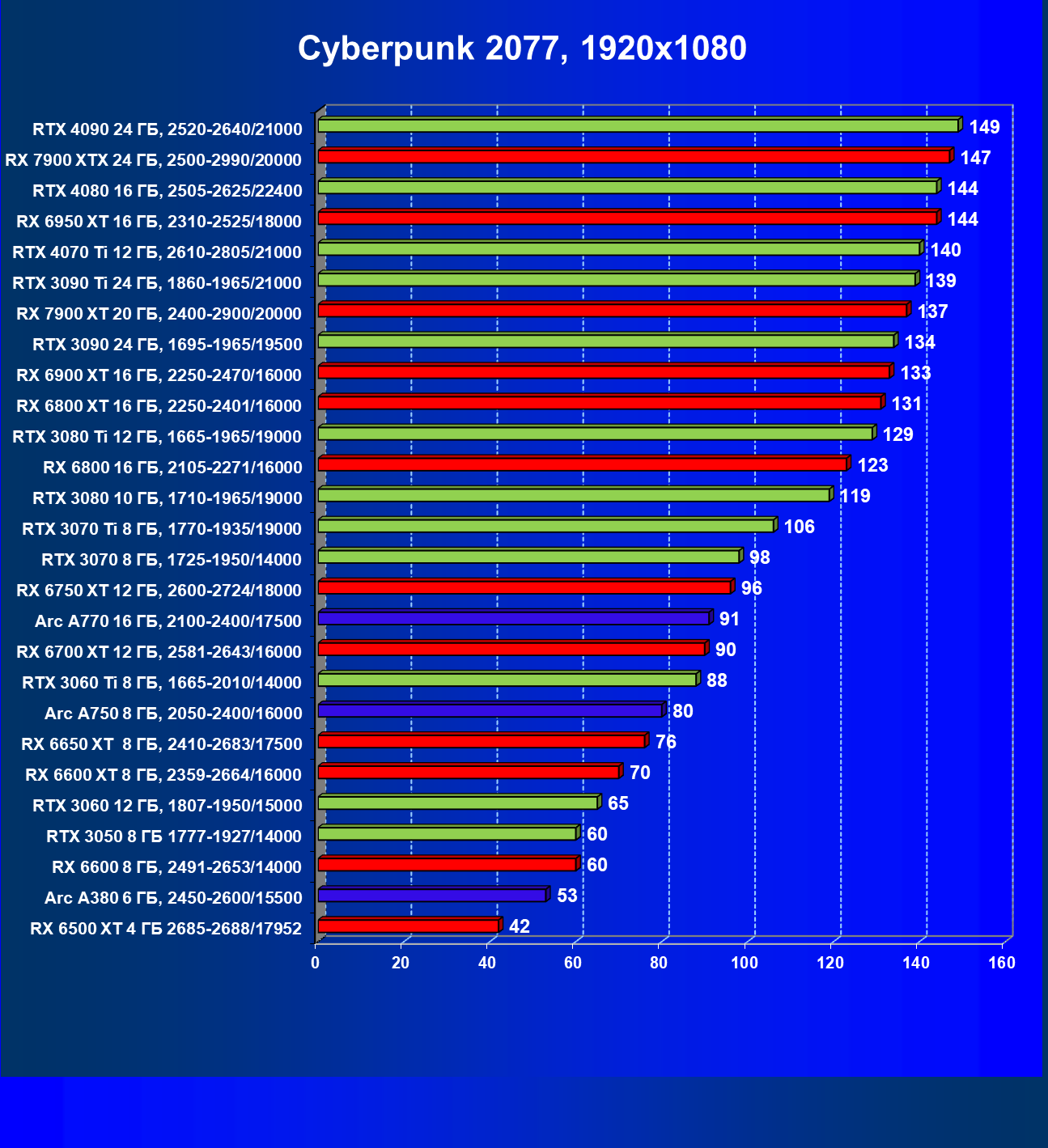 Этот материал демонстрирует не только общий рейтинг видеокарт по производительности, но и их полезность с учетом цены на начало апреля 2023 года (материал готовился до выхода на рынок GeForce RTX 4070).