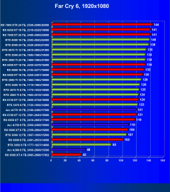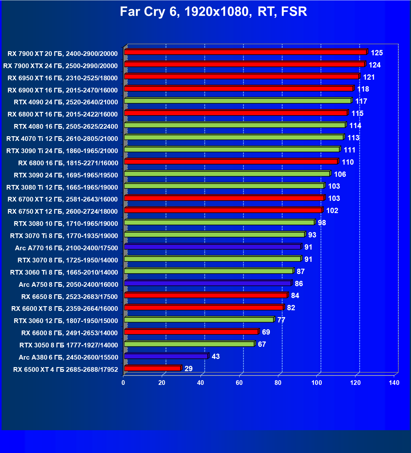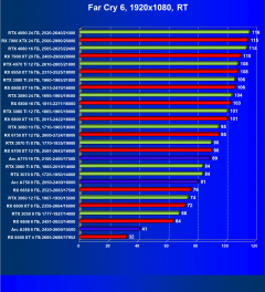 Radeon RX 6750 XT позволит комфортно играть в разрешении 2.5K при максимальных настройках графики, причем как в играх без трассировки лучей, так и с оной, но с одновременной поддержкой AMD FSR (и то в ряде игр все-таки придется снижать либо настройки графики, либо разрешение). Если же говорить об играх с RT без поддержки FSR, то приемлемый комфорт мы сможем получить только в разрешении 1080р.