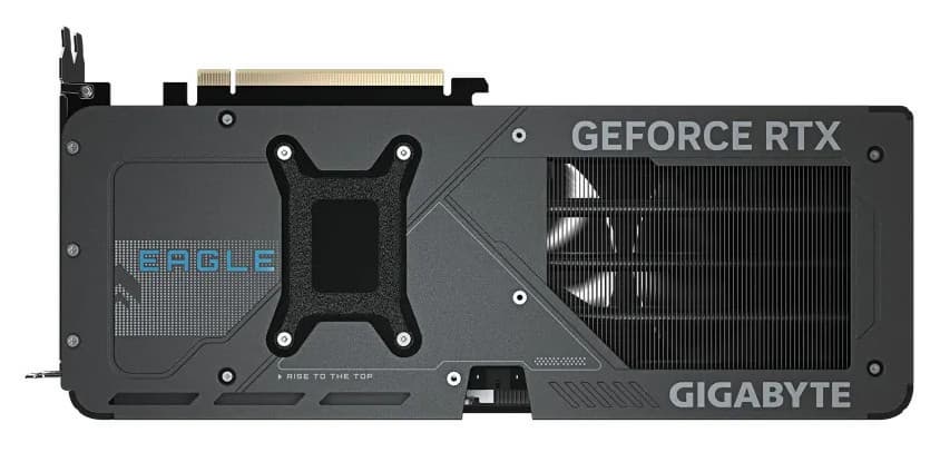 Выбранная нами карта Gigabyte имеет относительно небольшие размеры 290×120×50 мм, требует 3 слота для размещения. Карта имеет стандартный набор видеовыходов (3 DP 2.1a и 1 HDMI 2.1b) и один 16-контактный разъем питания 12VHPWR типа PCIe 5.0.