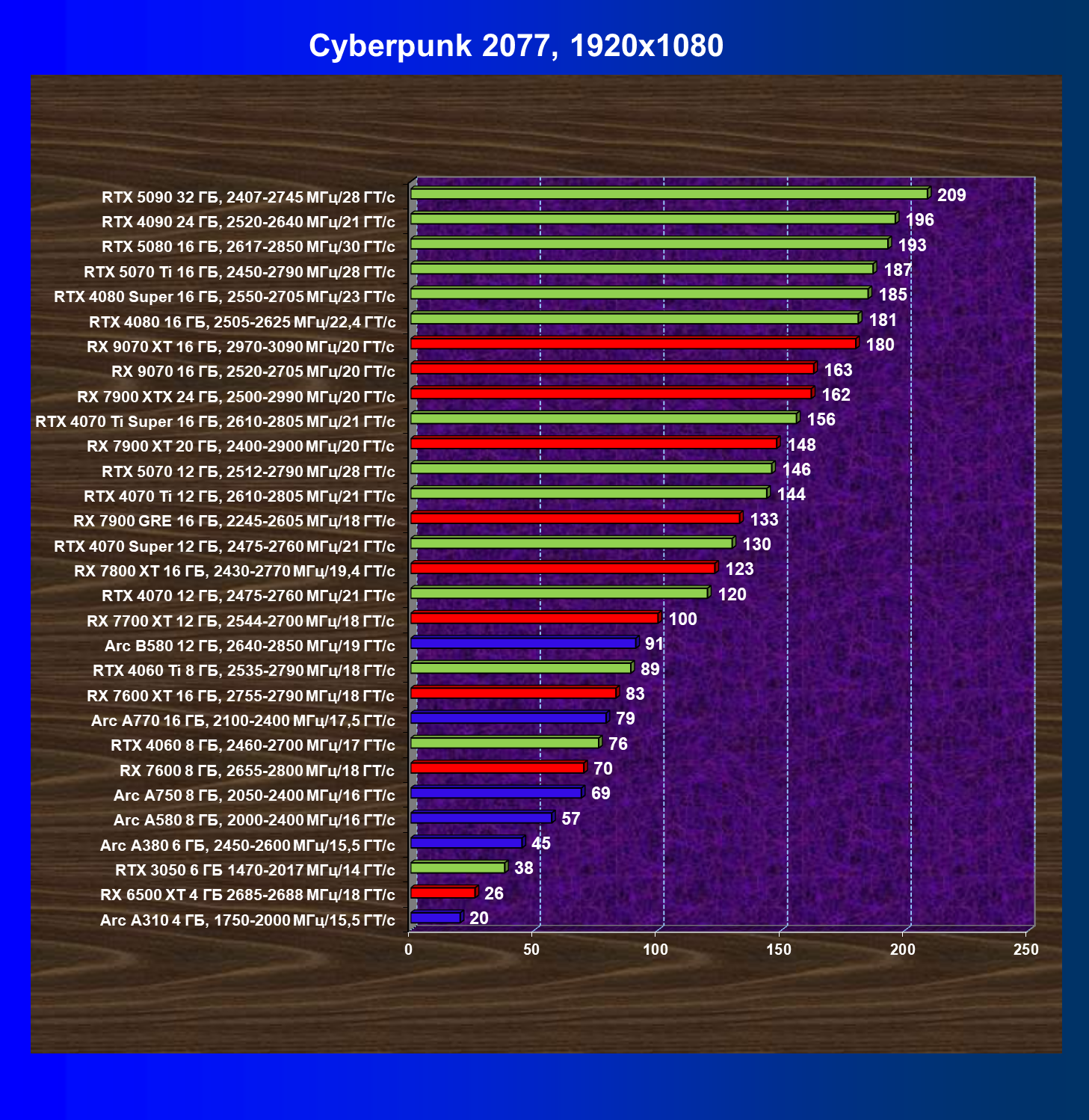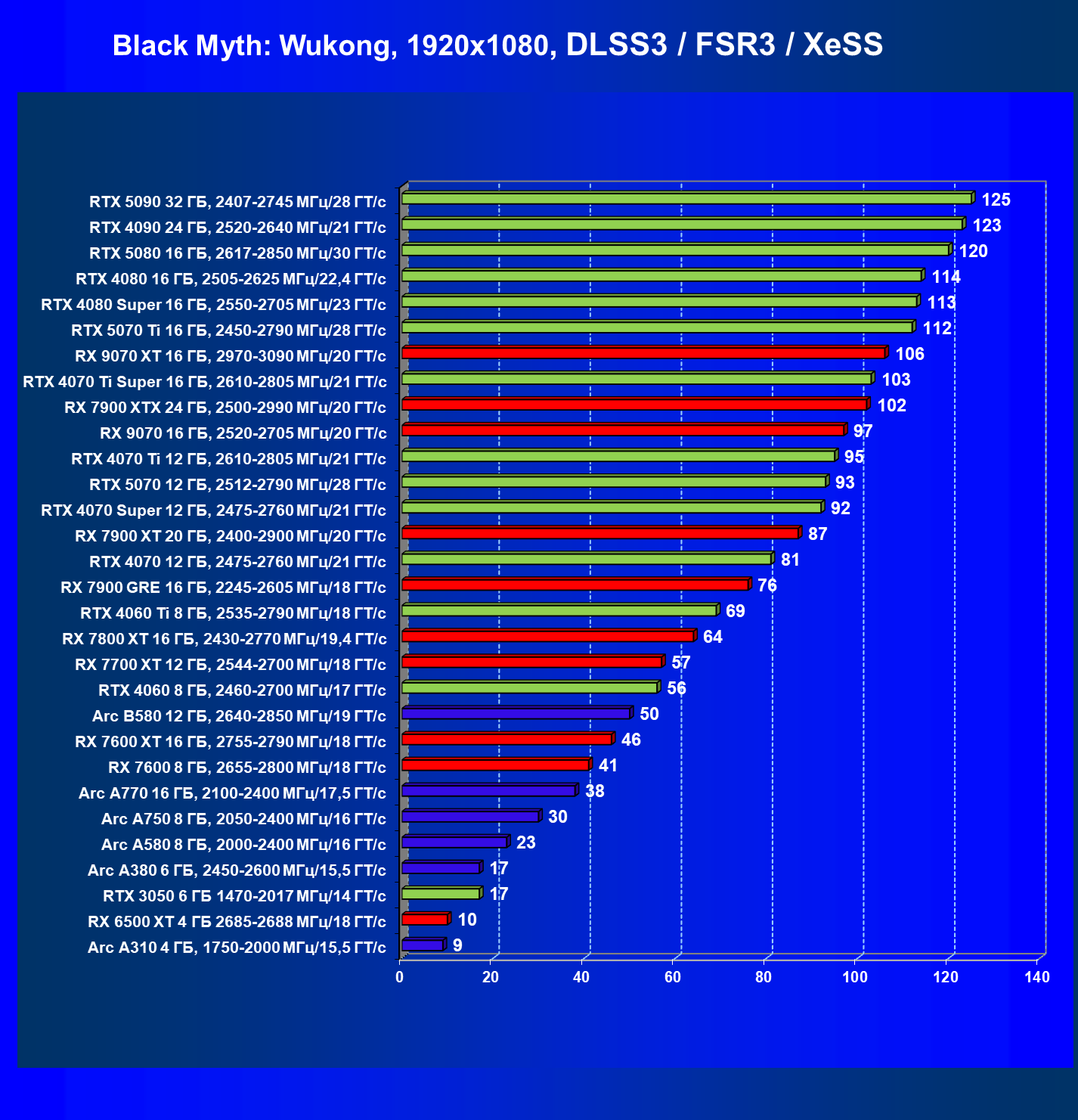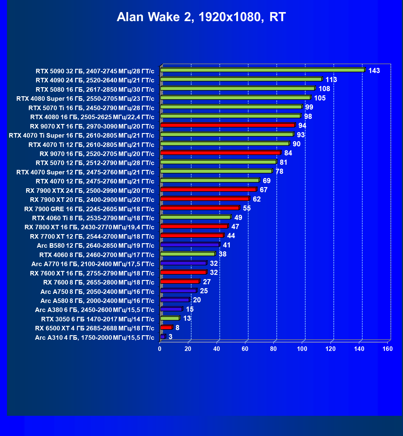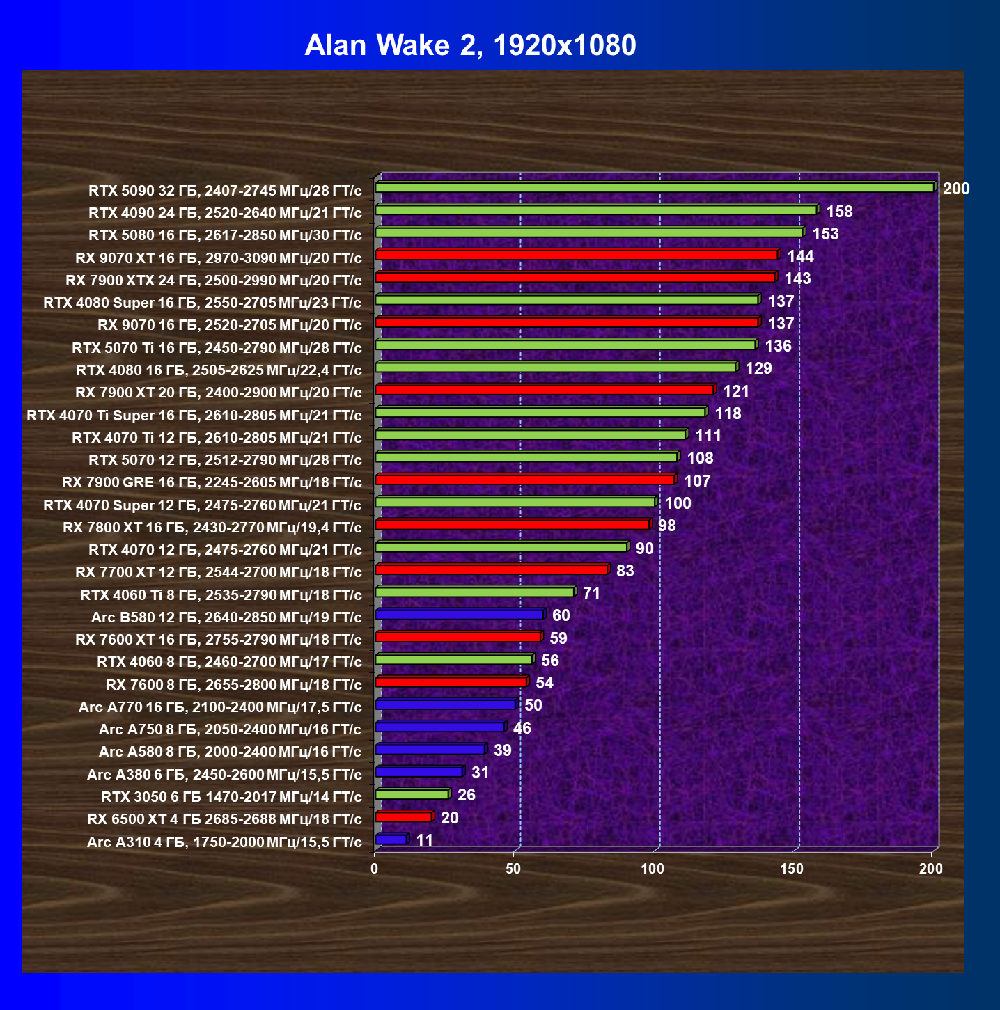 Все упомянутые видеокарты подойдут и для игр на мониторах с более массовым разрешением Full HD. При включении трассировки лучей совместно с DLSS, FSR или XeSS полный комфорт обеспечивают карты уровня Radeon RX 7700 XT, GeForce RTX 4060, Arc B580, а также Arc A770.