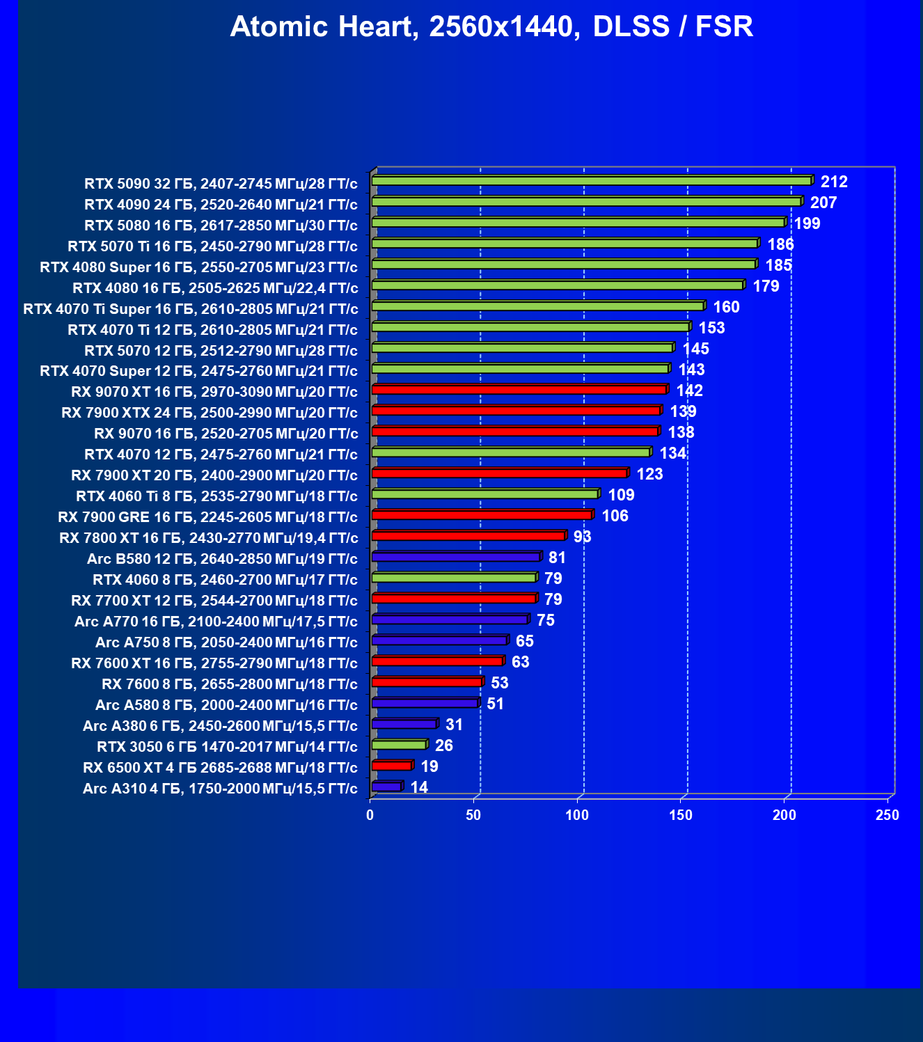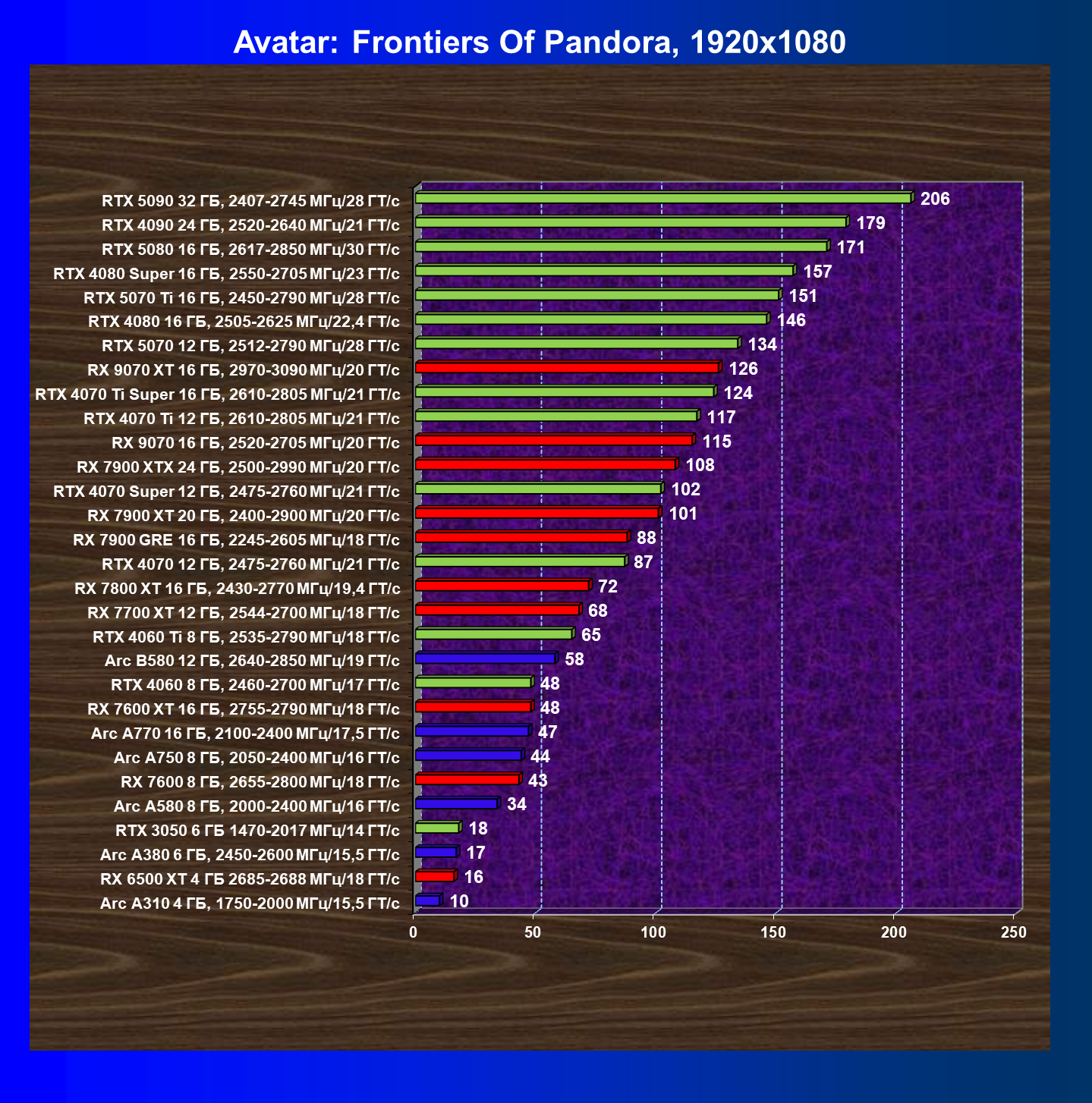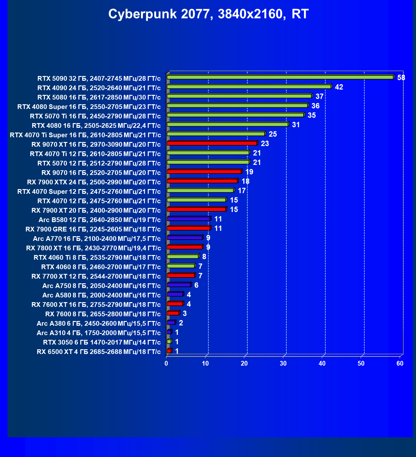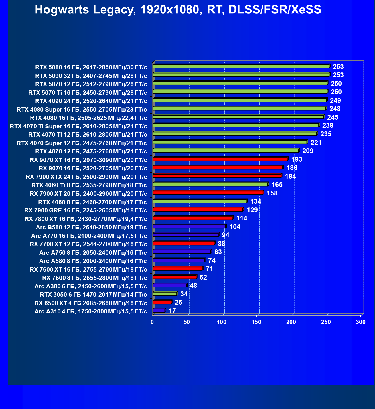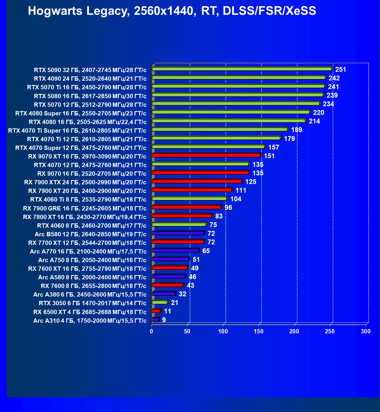 Все упомянутые видеокарты подойдут и для игр на мониторах с более массовым разрешением Full HD. При включении трассировки лучей совместно с DLSS, FSR или XeSS полный комфорт обеспечивают карты уровня Radeon RX 7700 XT, GeForce RTX 4060, Arc B580, а также Arc A770.