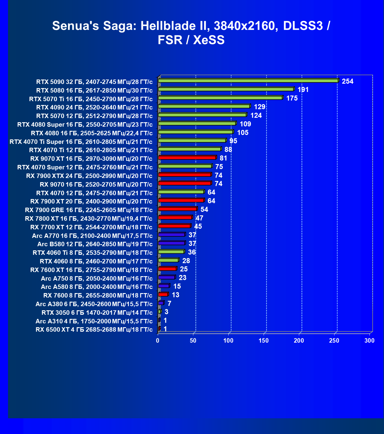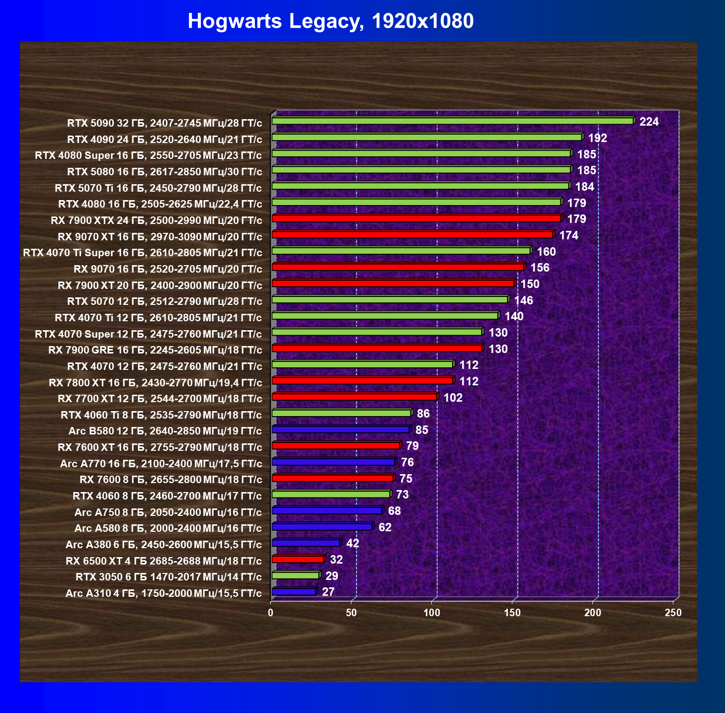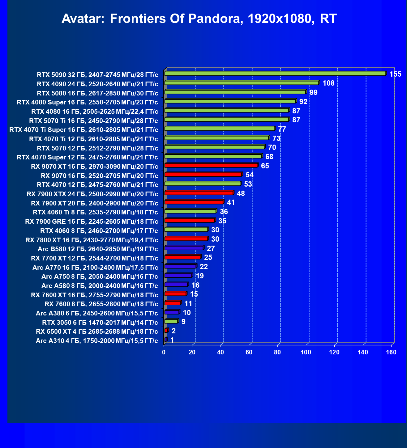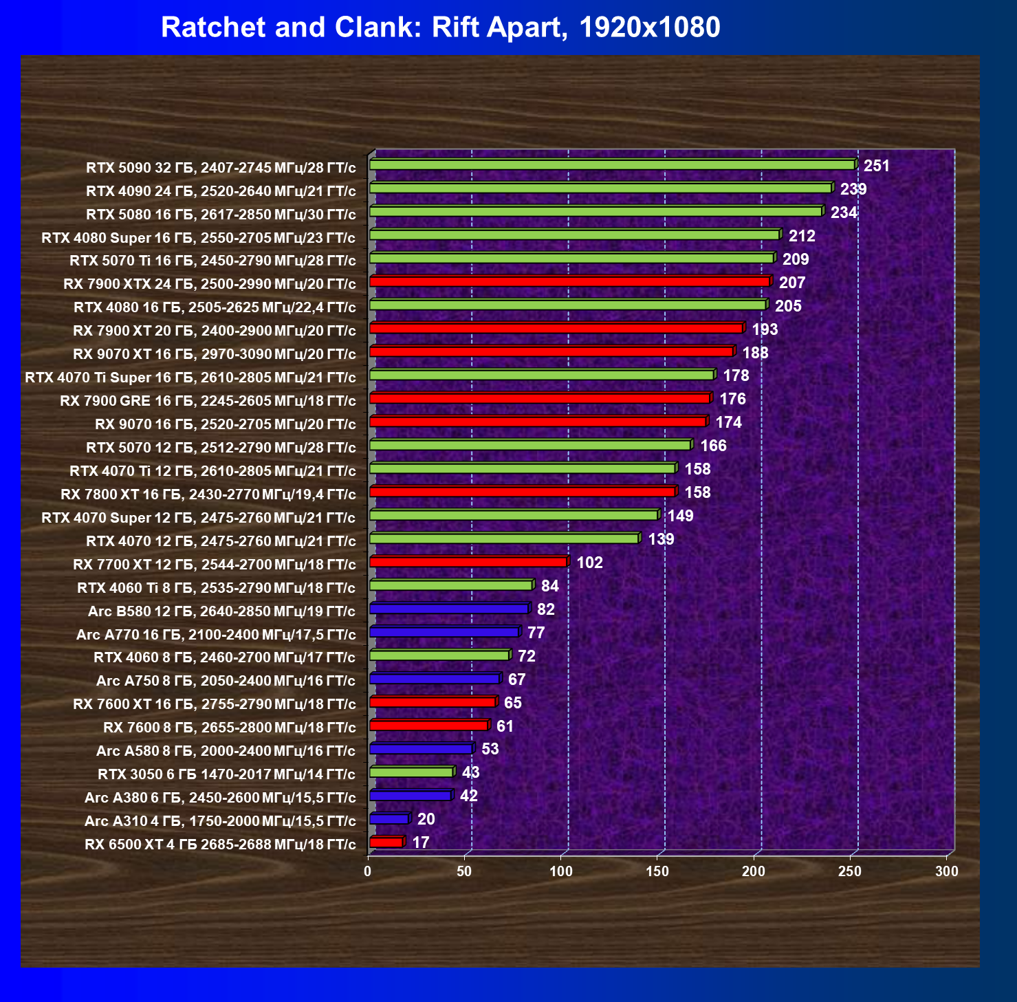 Все упомянутые видеокарты подойдут и для игр на мониторах с более массовым разрешением Full HD. При включении трассировки лучей совместно с DLSS, FSR или XeSS полный комфорт обеспечивают карты уровня Radeon RX 7700 XT, GeForce RTX 4060, Arc B580, а также Arc A770.