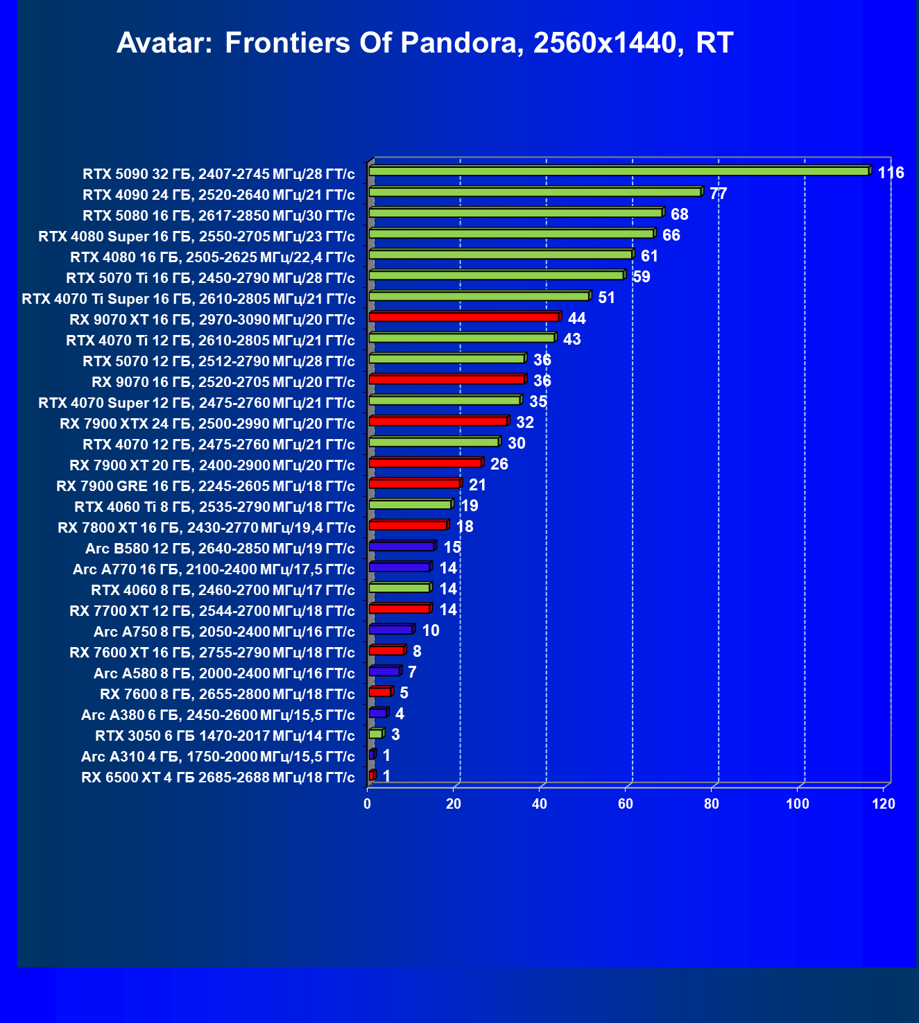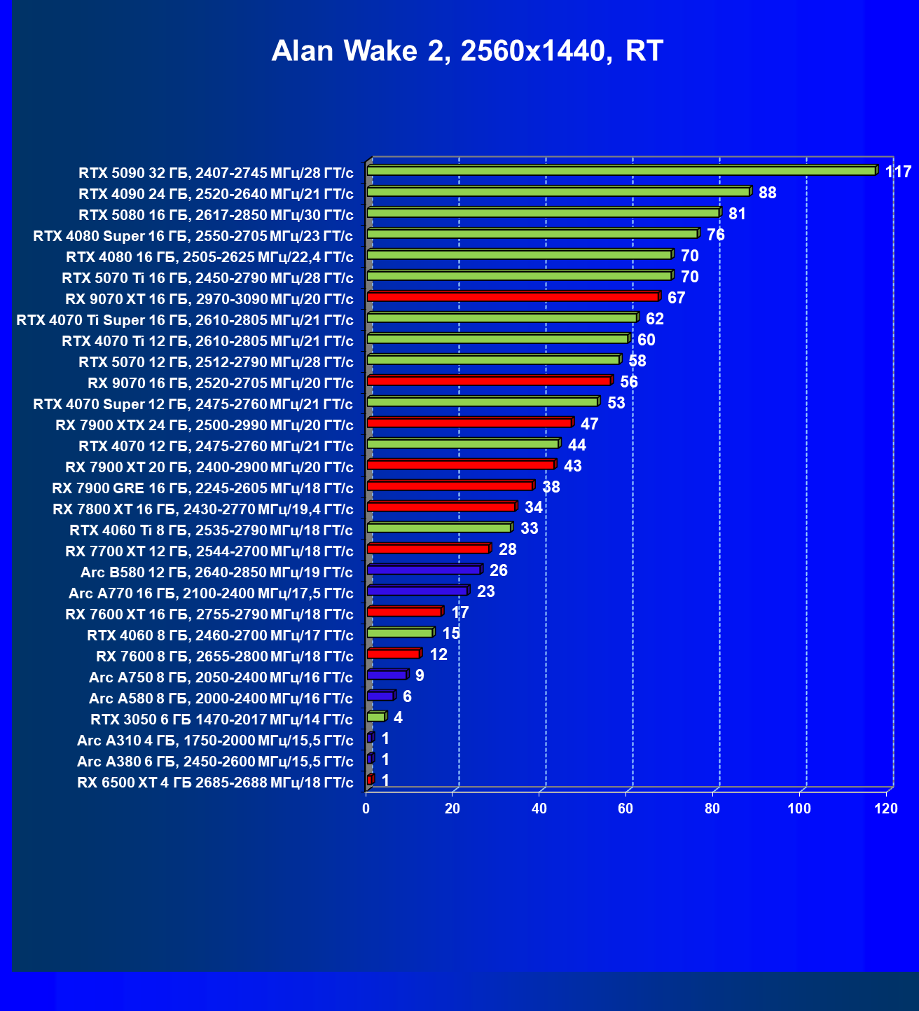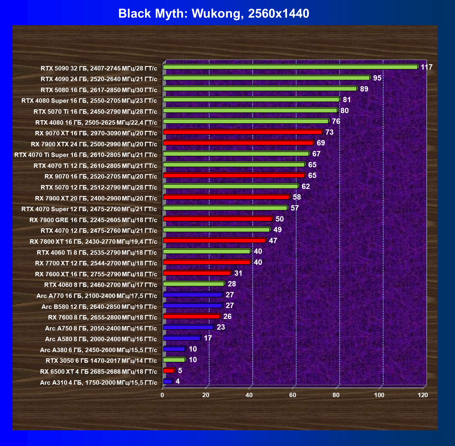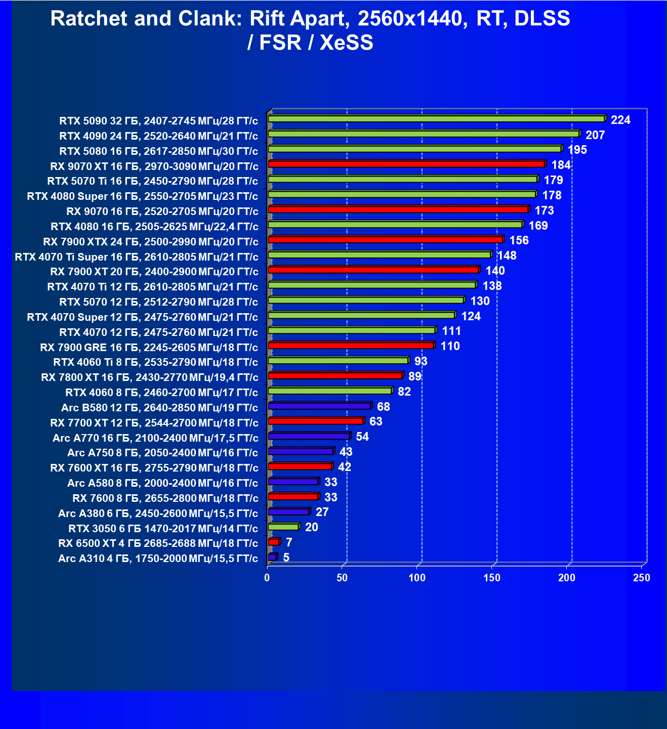 Для игр с RT в этом разрешении потребуются GeForce RTX 4070, GeForce RTX 4060 Ti или Radeon RX 7800 XT (или более производительные карты). Задействование FSR/XeSS совместно с RT позволит поиграть в 2.5K с помощью Arc B580, Radeon RX 7700 XT и некоторых близких к ним ускорителей, но далеко не во все игры.