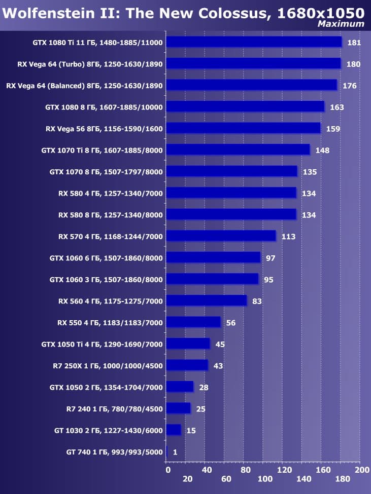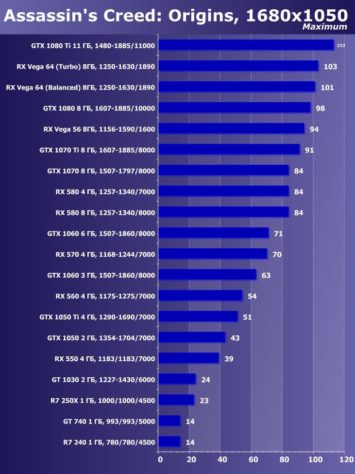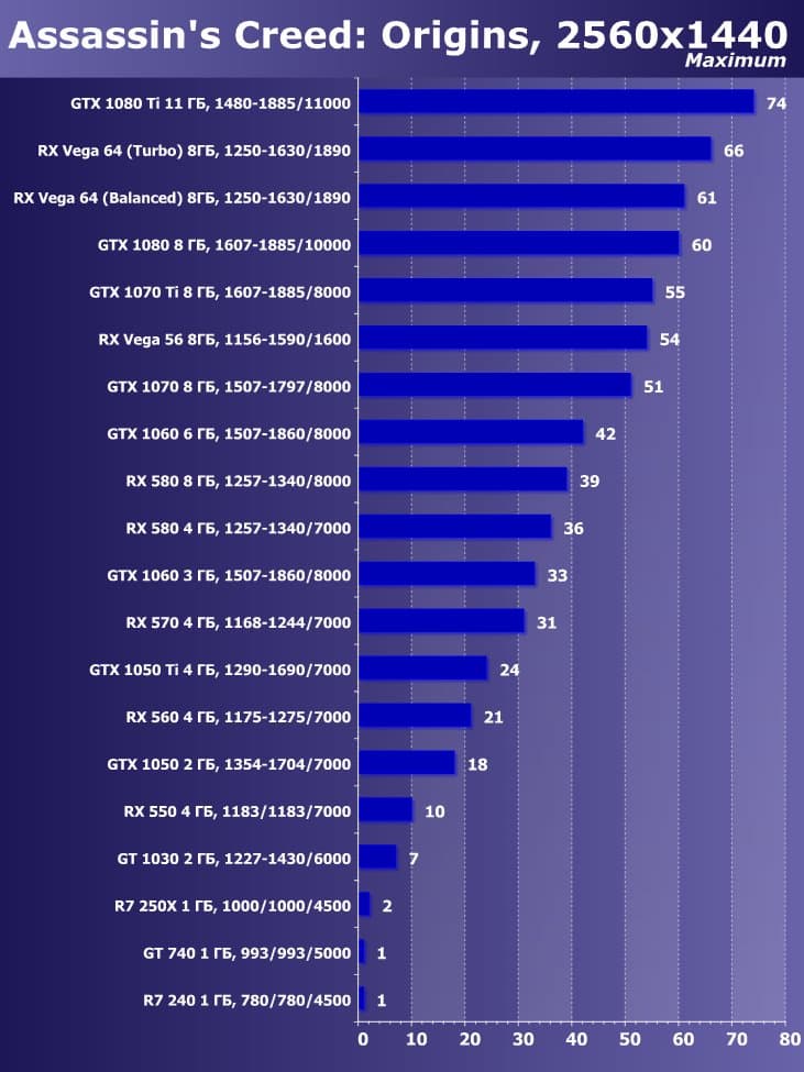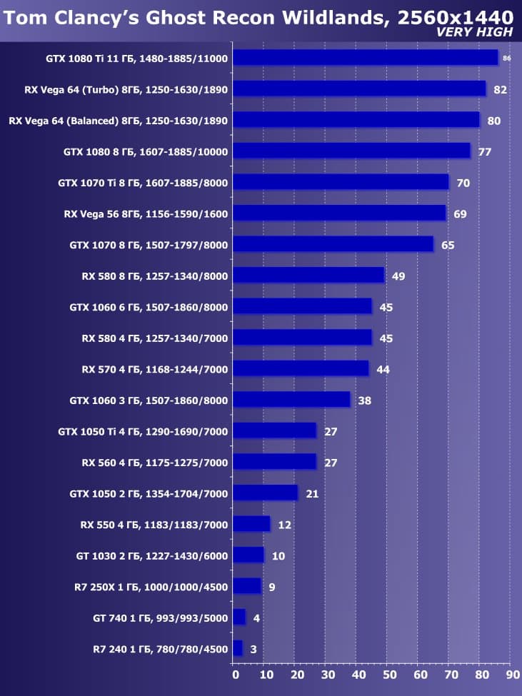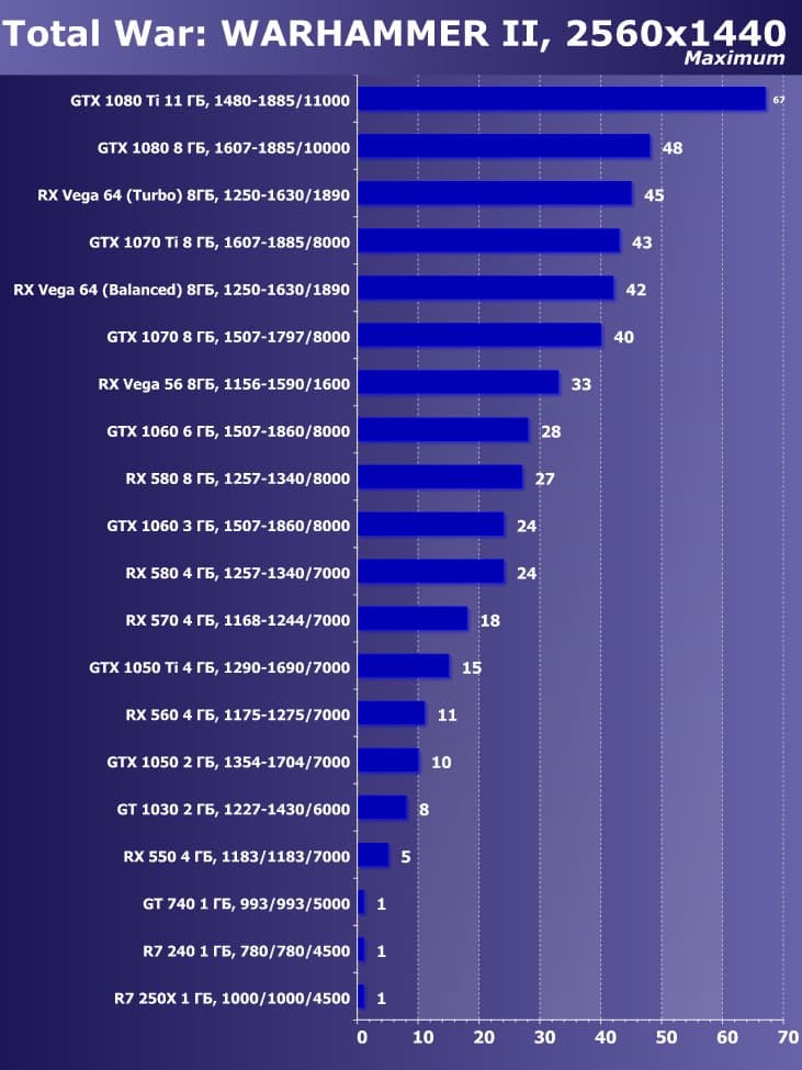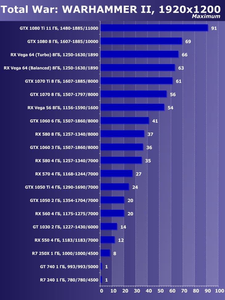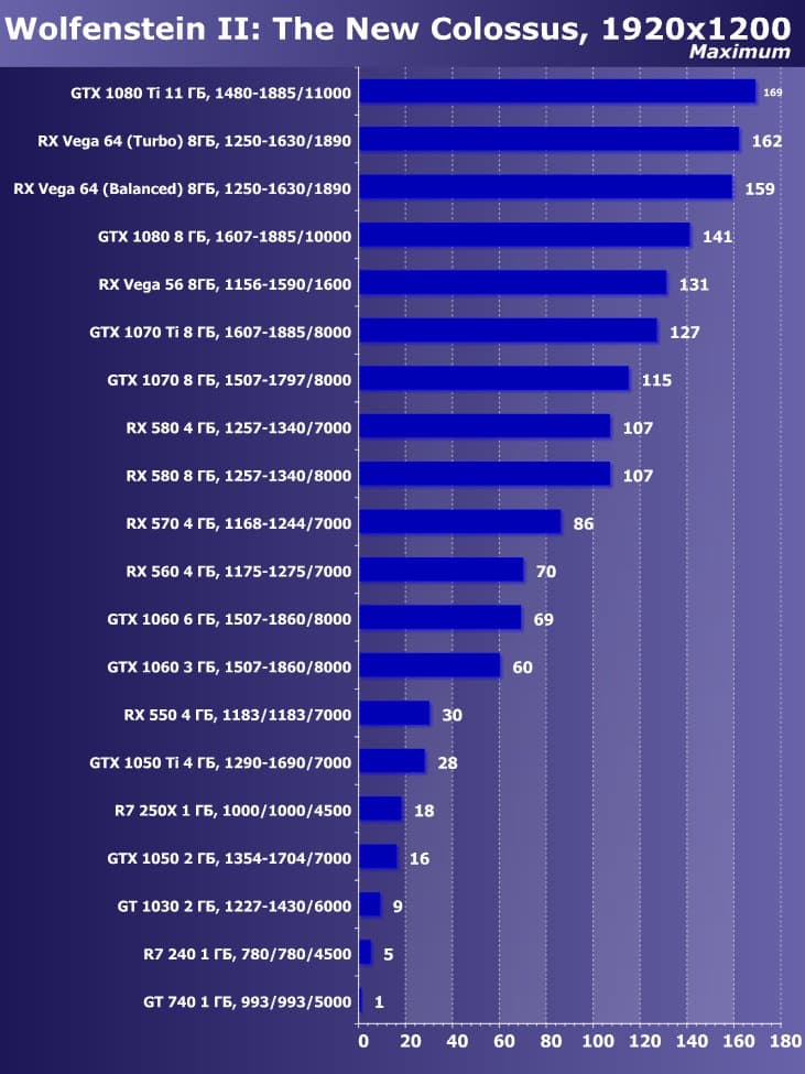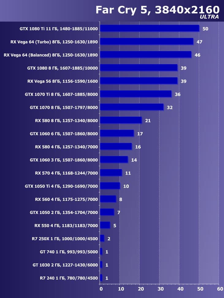 Итак, лучшим ускорителем по соотношению цены и возможностей на начало мая 2018 года для разрешения 4К (при максимальном качестве) является ускоритель класса GeForce GTX 1080 Ti. Для разрешения 2.5К (при максимальном качестве) подойдет GeForce GTX 1080, если же пользователь согласен понизить уровень качества, то для такого разрешения подойдет и Radeon RX 580 8 ГБ, который также отлично годится для Full HD (или 1920×1200) на максимальных настройках. Остальные карты уже не тянут разрешение Full HD при максимальном качестве, а значит, придется понижать качество картинки.