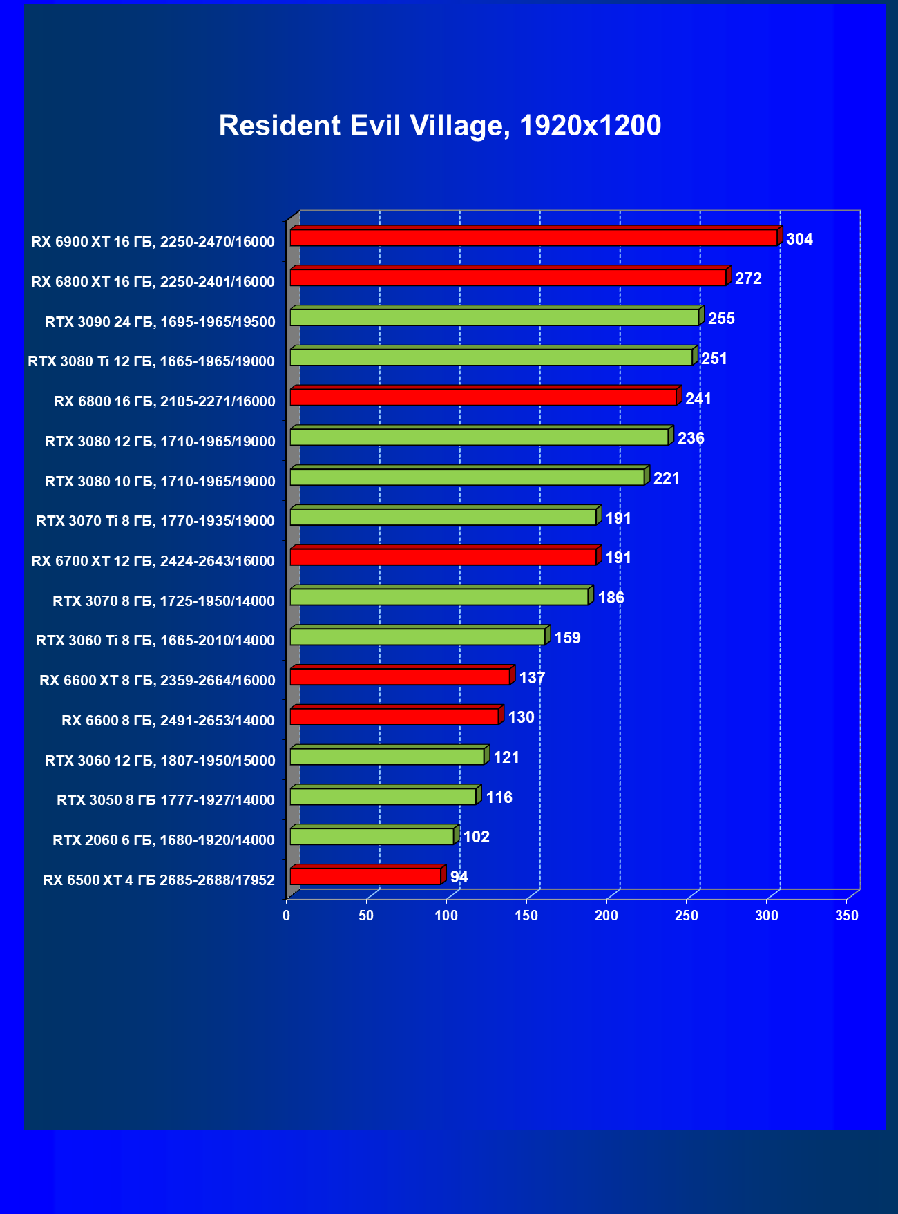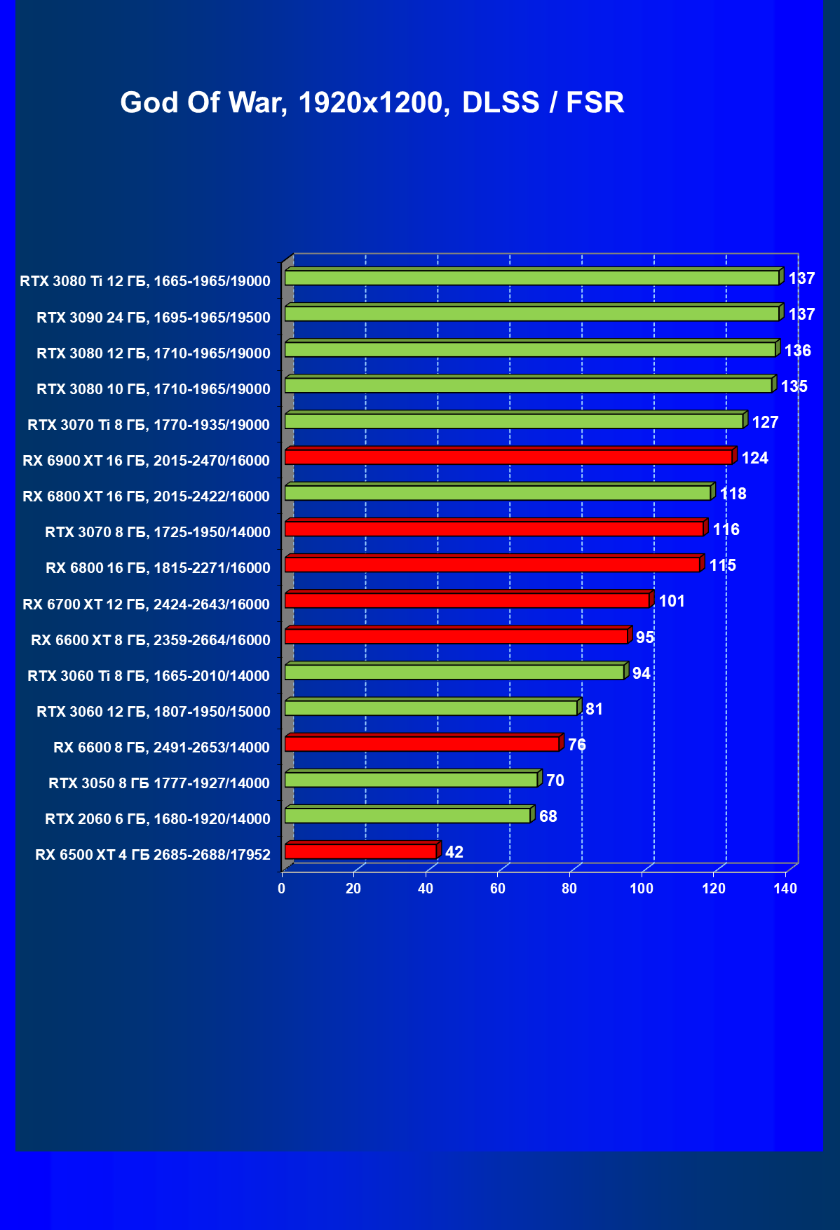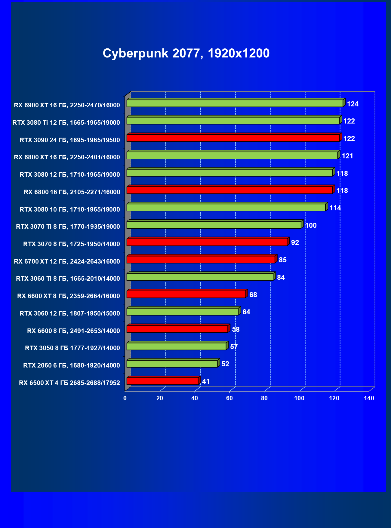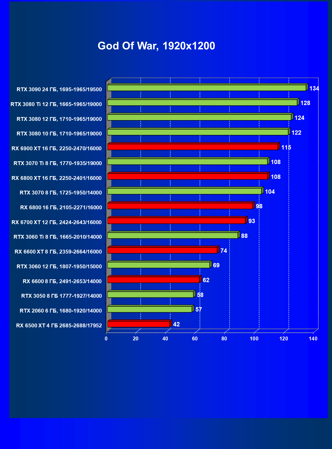 Теперь пройдемся по разрешениям без учета ценового фактора — только чистая производительность. На картинке ниже приведена производительность без RT.