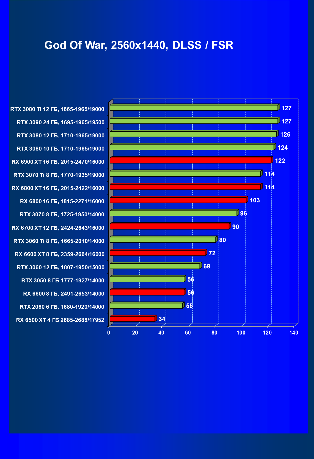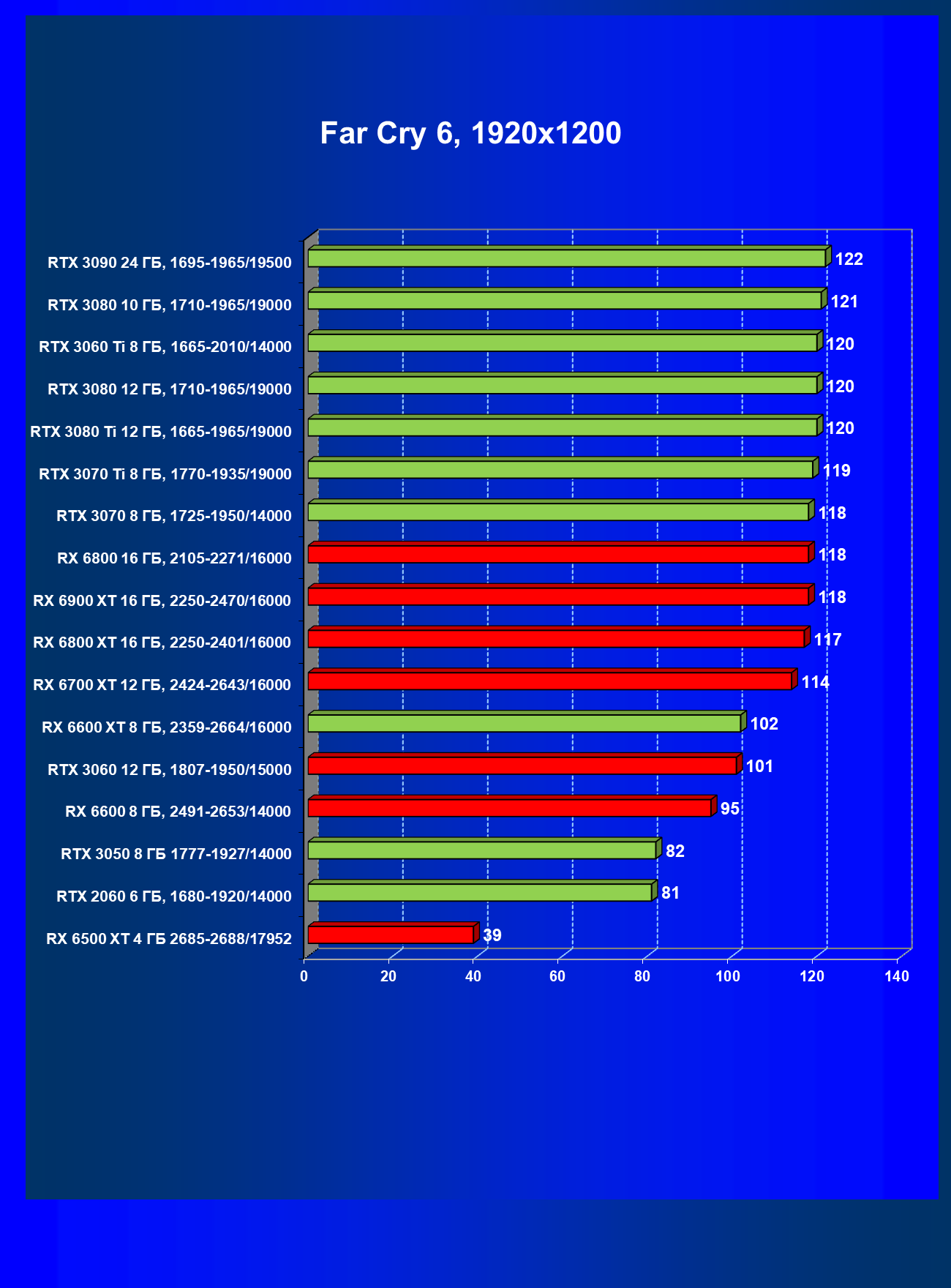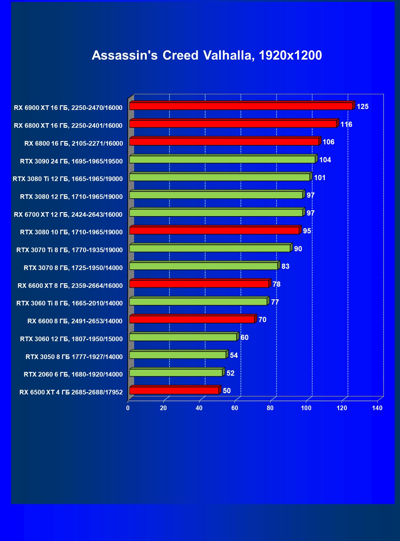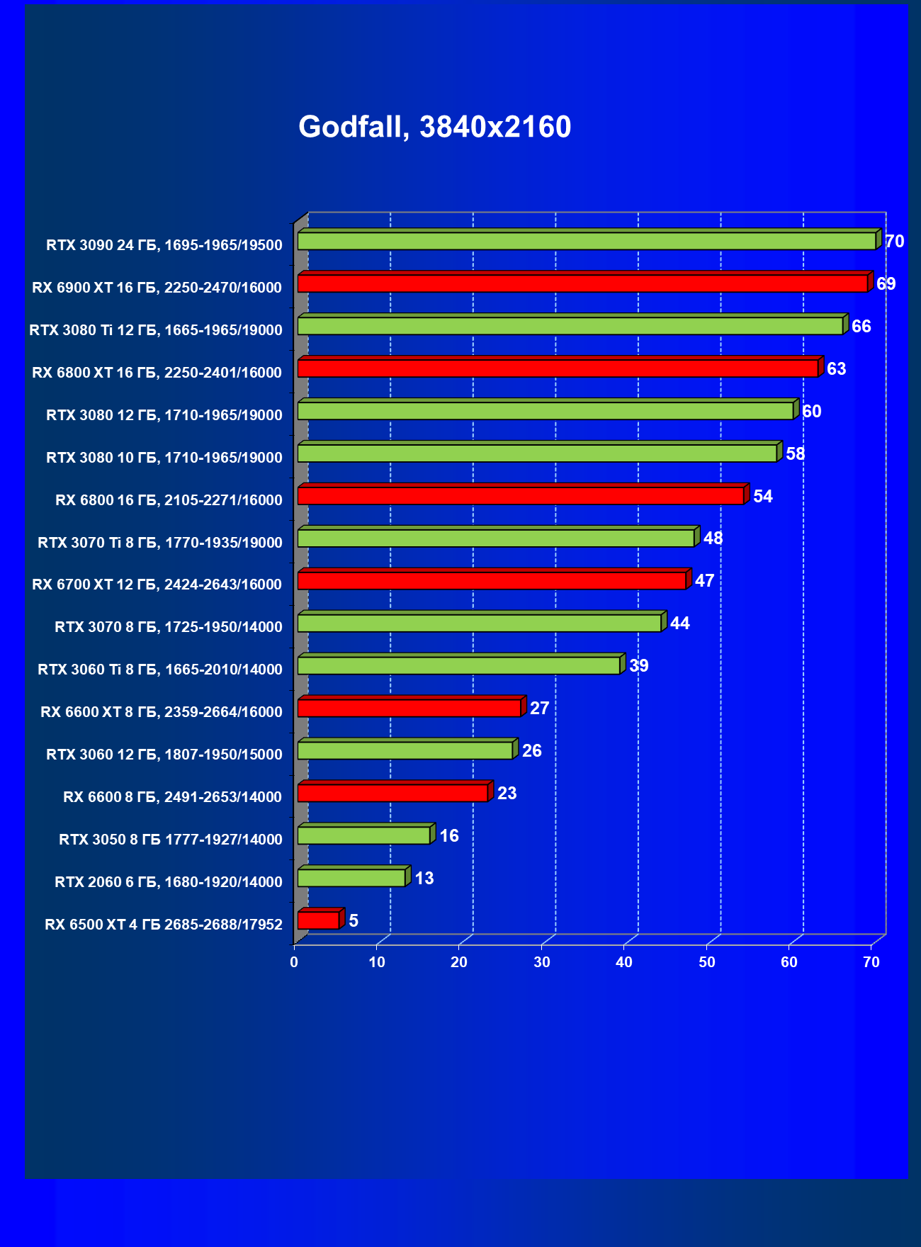 Теперь пройдемся по разрешениям без учета ценового фактора — только чистая производительность. На картинке ниже приведена производительность без RT.