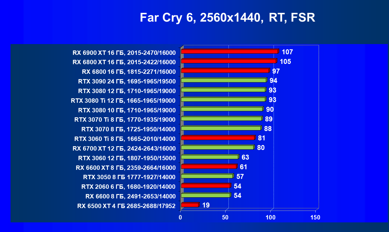 Кроме всех вышеперечисленных ускорителей для разрешения 2.5К при максимальном качестве картинки в классических играх с растеризацией подойдут прежде всего GeForce RTX 3060 Ti и Radeon RX 6700 XT (в ряде игр они могут замахнуться и на 4К), а если мы говорим об играх с RT, то именно в этом разрешении хорошо проявят себя Radeon RX 6900 XT и Radeon RX 6800 XT. Radeon RX 6600 XT весьма неплох для этого разрешения, но только без RT и не во всех играх (а уж 4К явно не для него). GeForce RTX 3060 и представители предыдущего поколения GeForce RTX 2070 Super/2070/2060 Super и Radeon RX 5700 XT также неплохо справляются с 2560×1440 (правда, уже с оговорками).