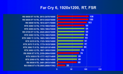 Ускоритель позволяет комфортно играть в современные игры в разрешении 2.5К при максимальных настройках графики (но без трассировки лучей!). Карта Sapphire чуть-чуть быстрее референс-аналога, а в играх без трассировки лучей Radeon RX 6700 XT почти догоняет GeForce RTX 3070. При включении RT производительность Radeon RX 6700 XT сильно падает, но если игра поддерживает еще и технологию AMD FSR, ее применение может отчасти компенсировать падение скорости от включения RT.