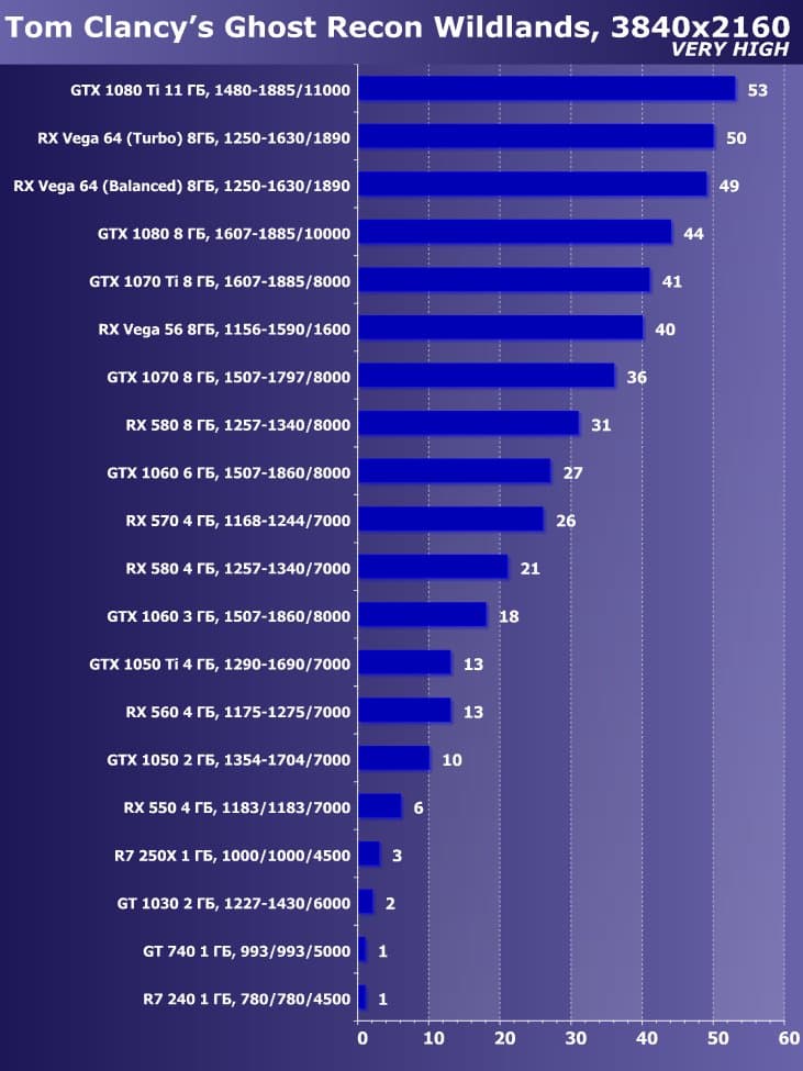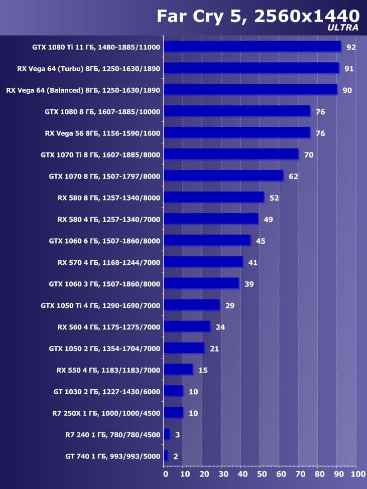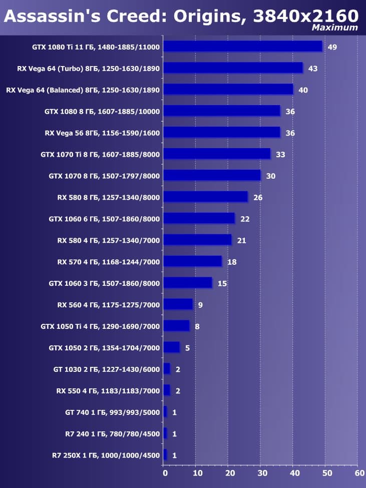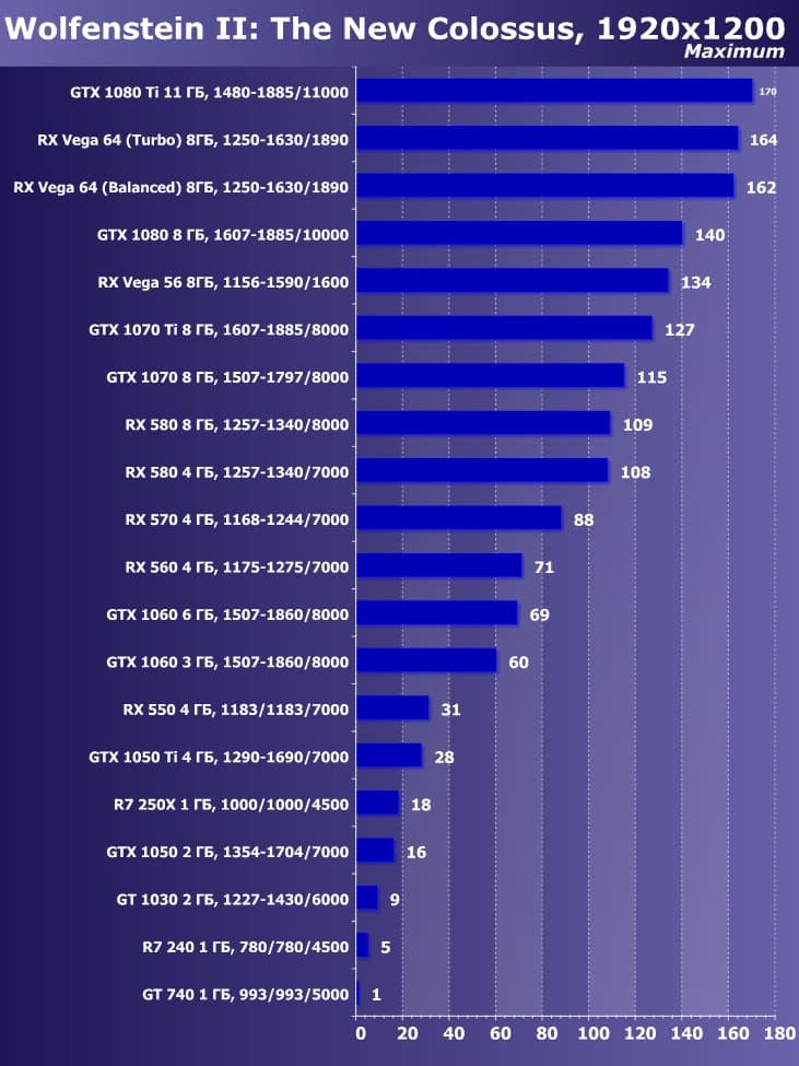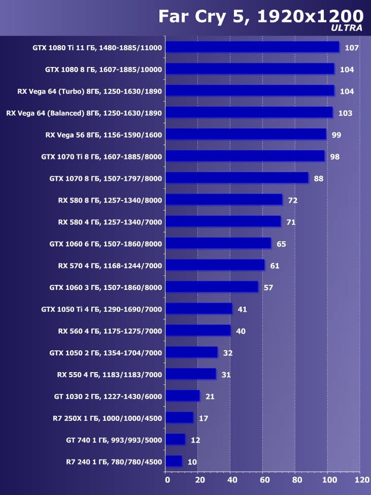 Итак, лучшим ускорителем по соотношению цены и возможностей на начало июня 2018 года для разрешения 4К (при максимальном качестве) является ускоритель GeForce GTX 1080 Ti. Для разрешения 2.5К (при максимальном качестве) подойдет GeForce GTX 1080, если же пользователь согласен понизить уровень качества, то для такого разрешения подойдет и Radeon RX 580 8 ГБ, который также отлично годится для Full HD (или 1920×1200) на максимальных настройках. Менее производительные карты уже не тянут разрешение Full HD при максимальном качестве, а значит, придется понижать качество картинки.