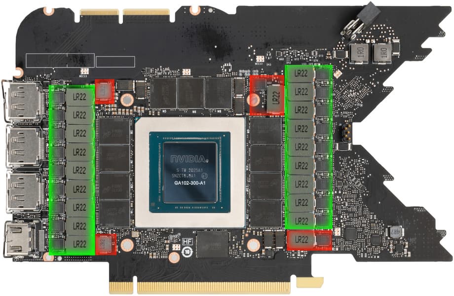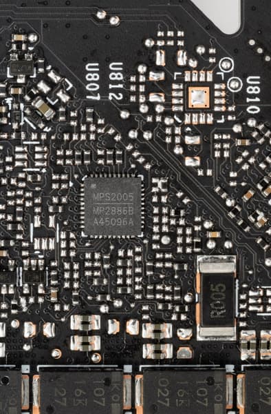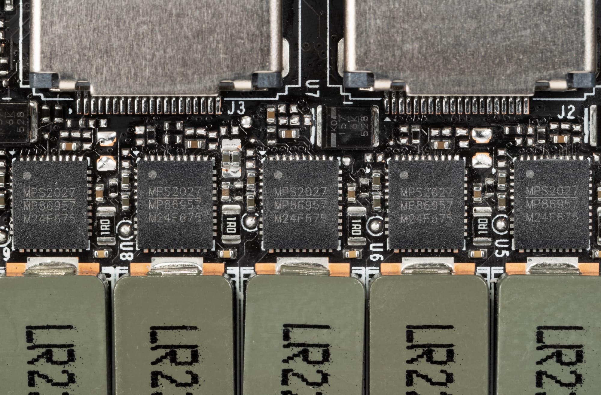 При этом ручной разгон обеспечивает прирост в играх в разрешении 4K почти на 8% относительно референсных значений. Правда, при этом энергопотребление карты достигает 527 Вт, что выдержит не каждый блок питания. Набор видеовыходов стандартный — 1×HDMI 2.1 и 3×DisplayPort 1.4a. У карты имеется красивая подсветка Midnight Kaleidoscope.