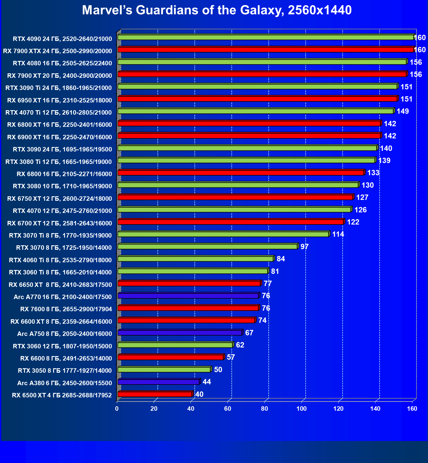 В рейтинге полезности для разрешения 2560×1440 лидером стал ускоритель Arc A750 8 ГБ из-за достаточного объема памяти для такого разрешения и оптимальной цены. На втором месте оказался Arc A380 6 ГБ, который немного дешевле, но менее производителен в данном разрешении, однако тоже позволит поиграть в современные игры в разрешении 2.5K. В играх с трассировкой лучей Arc A750 8 ГБ за свою цену — более актуальный выбор, чем более дорогой Arc A770 16 ГБ. Поэтому Arc A750 8 ГБ становится лучшей картой на июль.
