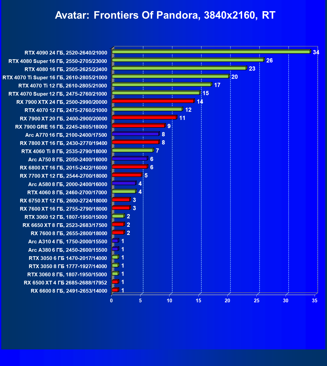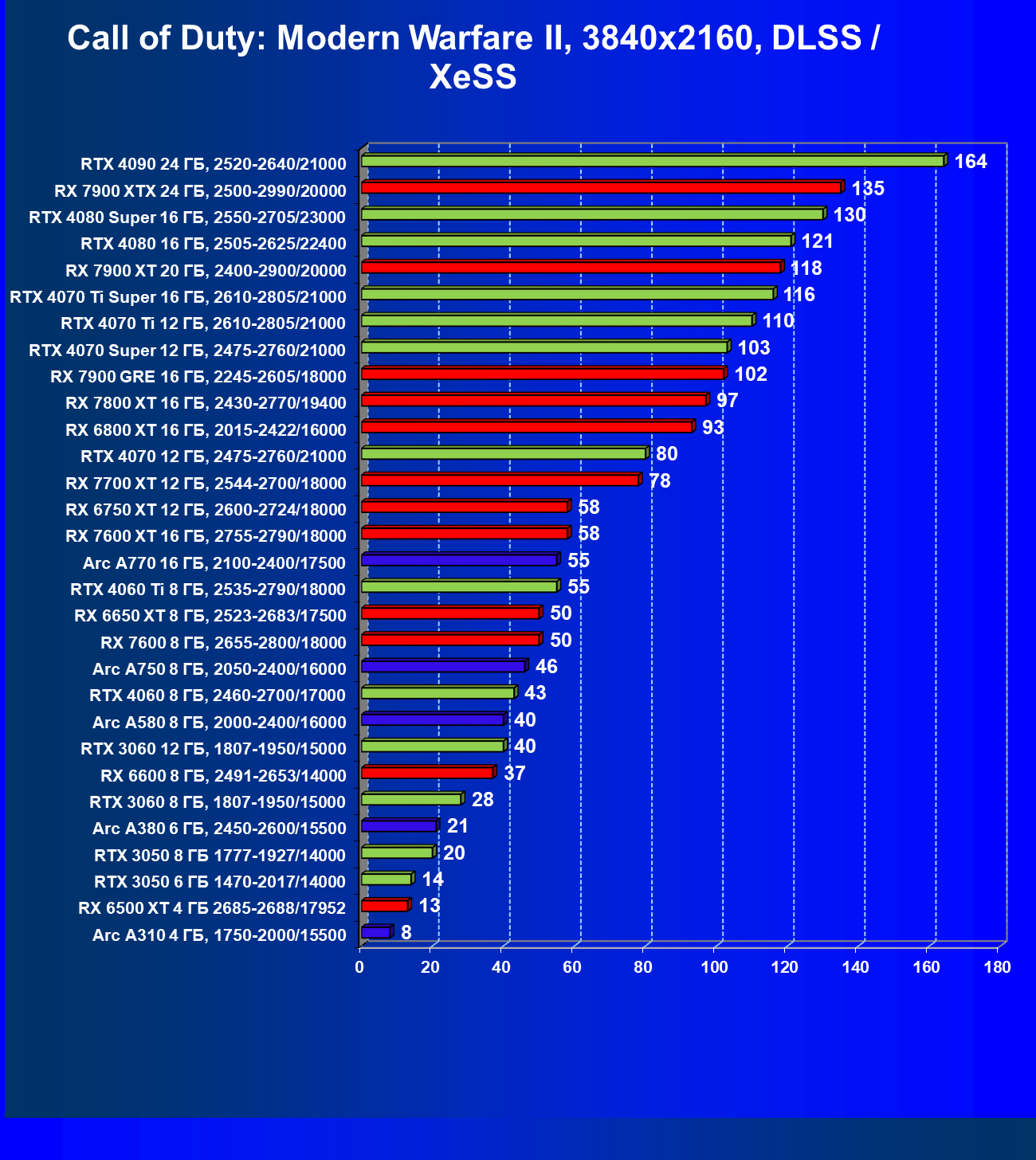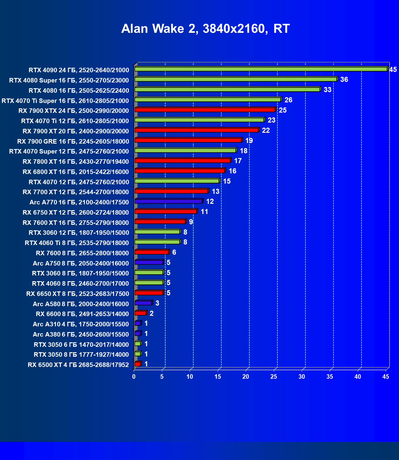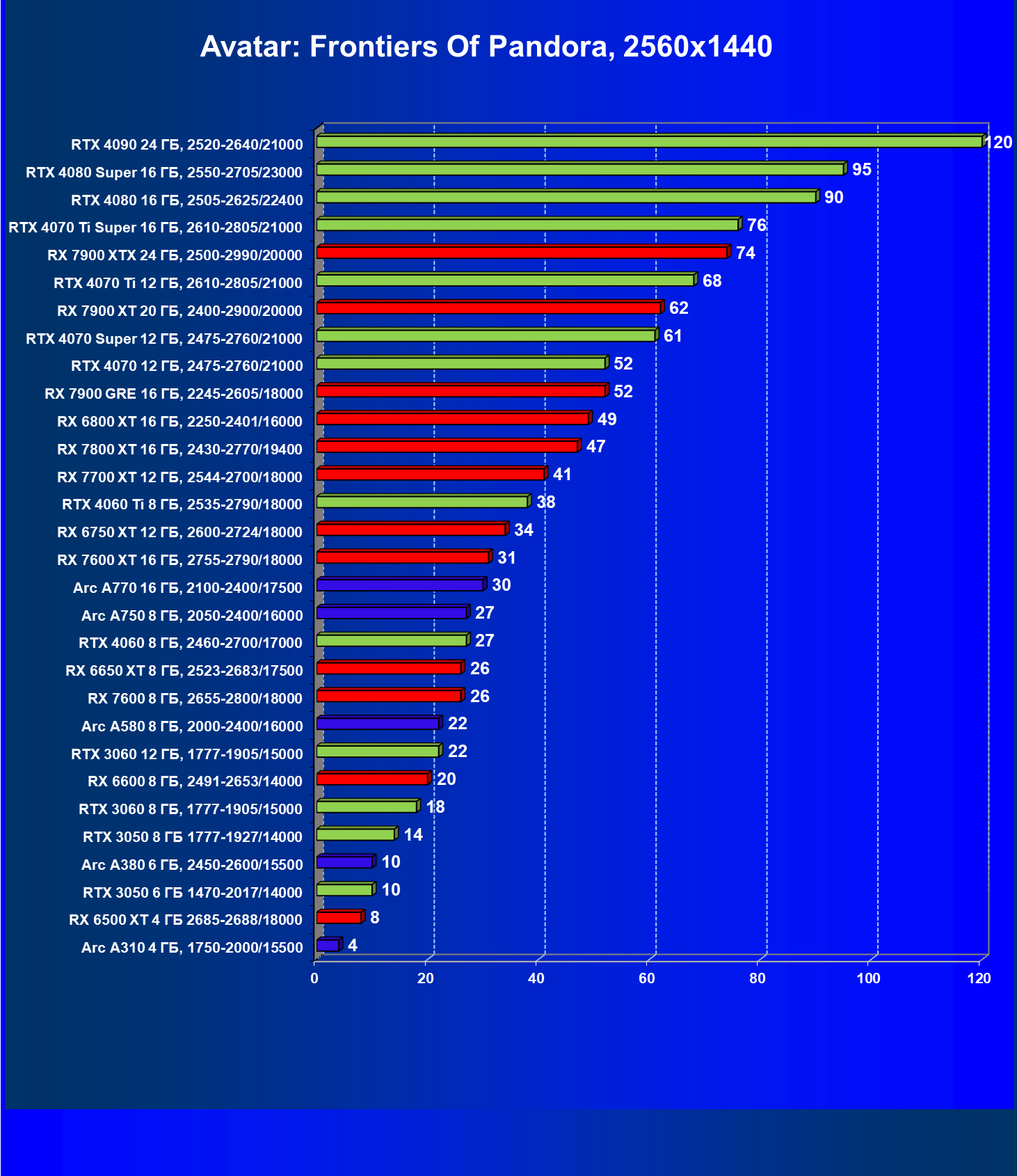 GeForce RTX 4090, GeForce RTX 4080 Super, GeForce RTX 4080, GeForce RTX 4070 Ti Super и Radeon RX 7900 XTX, в принципе, осиливают даже разрешение 8K (но без оговорок — только GeForce RTX 4090).