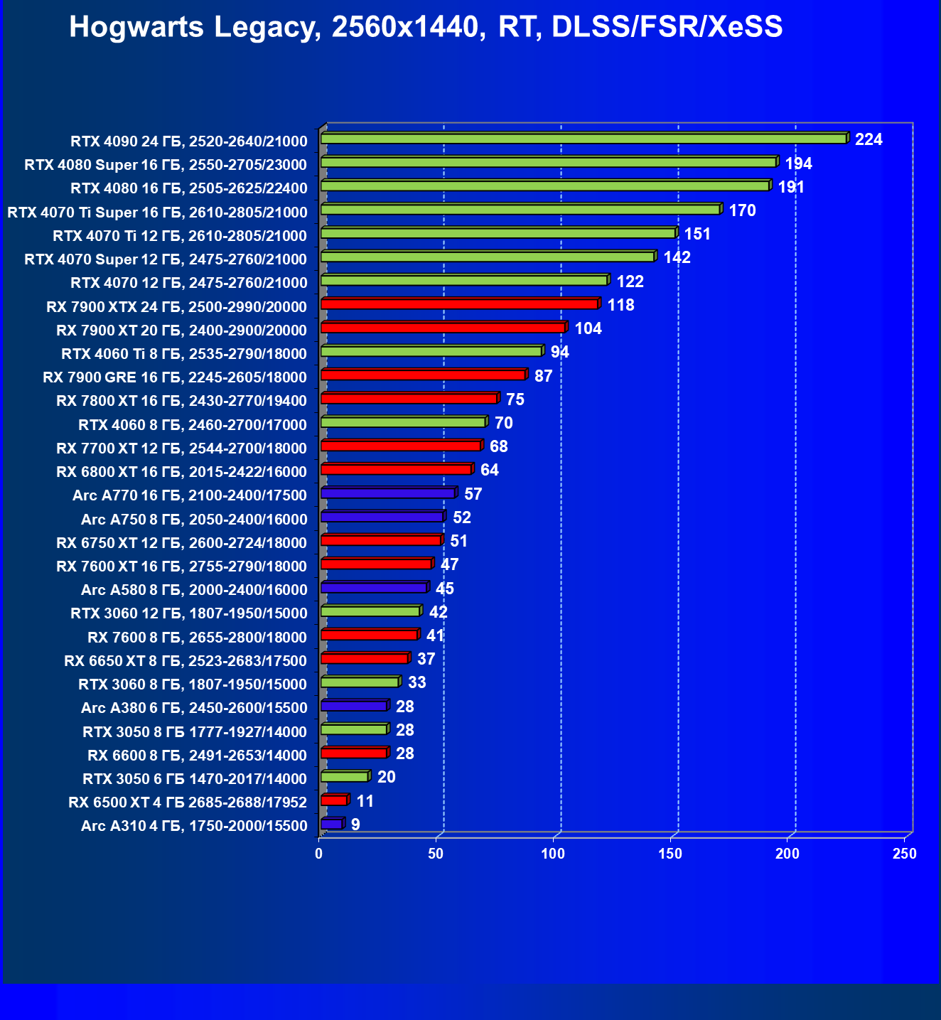 Для игр с RT в этом разрешении потребуются GeForce RTX 4070, GeForce RTX 4060 Ti или Radeon RX 7800 XT (или более производительные карты). Задействование FSR/XeSS совместно с RT позволит поиграть в 2.5K с помощью Radeon RX 7700 XT, Radeon RX 6750 XT и некоторых близких к ним ускорителей, но далеко не во все игры.