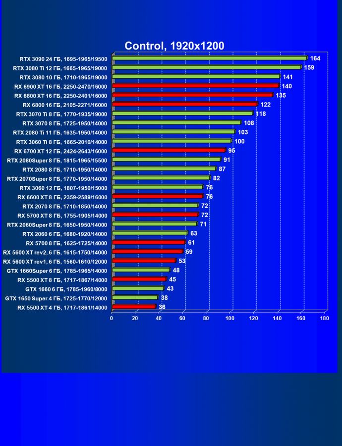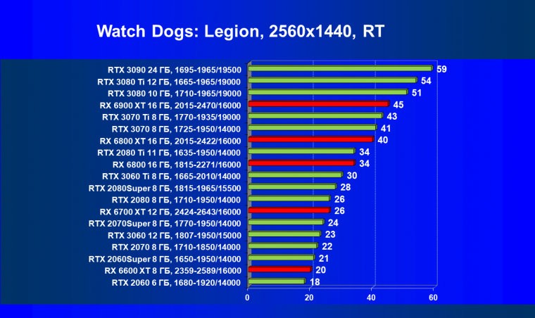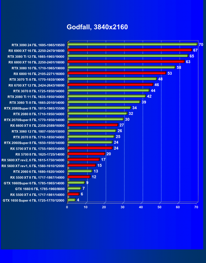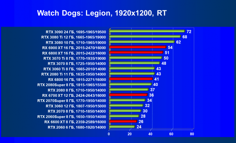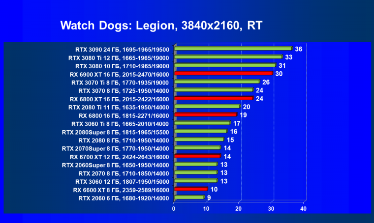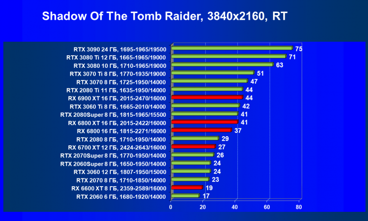 | 17 | RX 6700 XT 12 ГБ, 2424—2643/16000 | 18 | 144 | 80 000 |