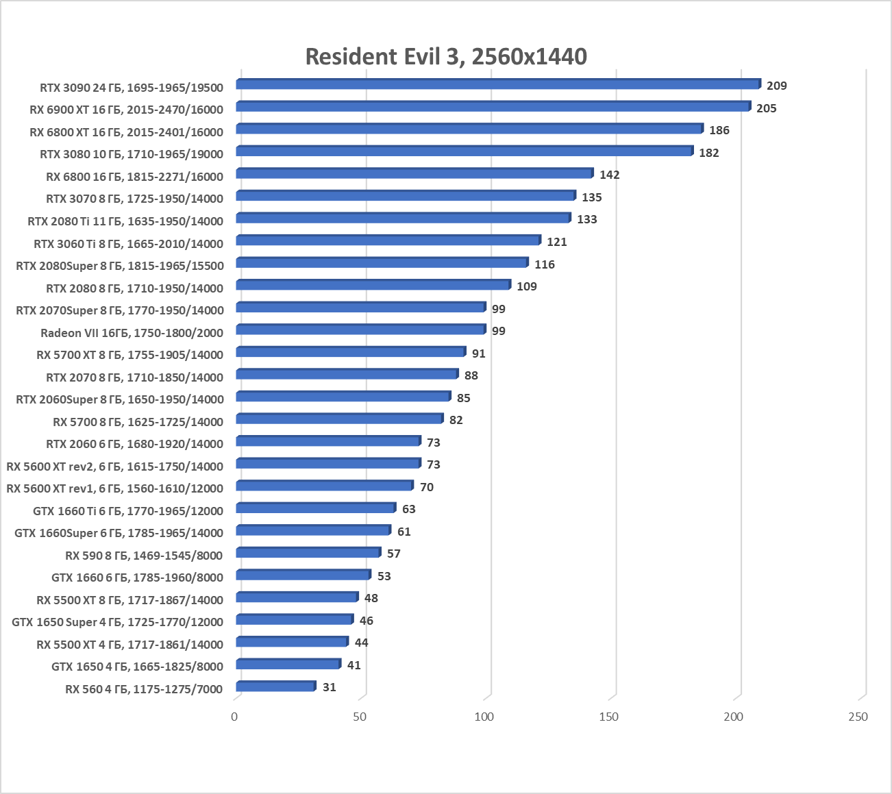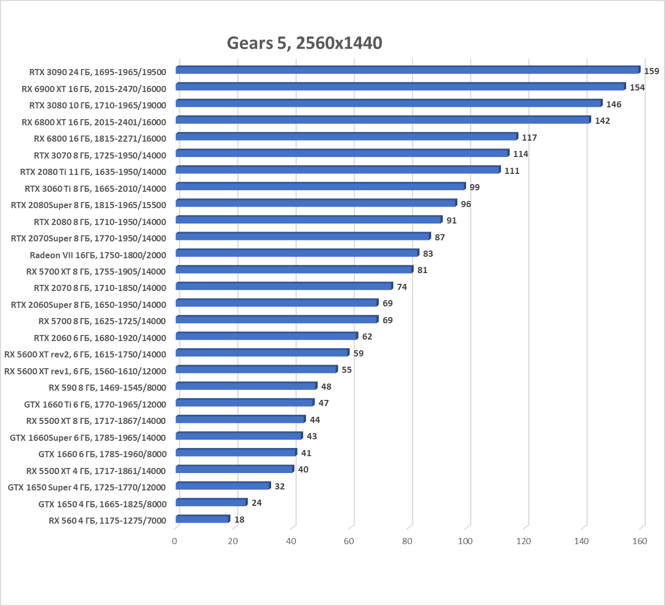 Кроме всех вышеперечисленных ускорителей для разрешения 2.5К при максимальном качестве картинки в классических играх с растеризацией подойдут прежде всего GeForce RTX 3060 Ti и Radeon RX 6700 XT (в ряде игр они могут замахнуться и на 4К), а если мы говорим об играх с RT, то именно в этом разрешении хорошо проявят себя Radeon RX 6900 XT и Radeon RX 6800 XT. Radeon RX 6600 XT весьма неплох для этого разрешения, но только без RT и не во всех играх (а уж 4К явно не для него). GeForce RTX 3060 и представители предыдущего поколения GeForce RTX 2070 Super/2070/2060 Super и Radeon RX 5700 XT также неплохо справляются с 2560×1440 (правда, уже с оговорками).