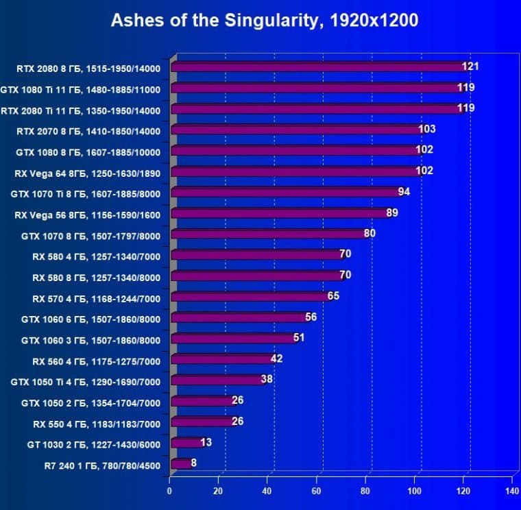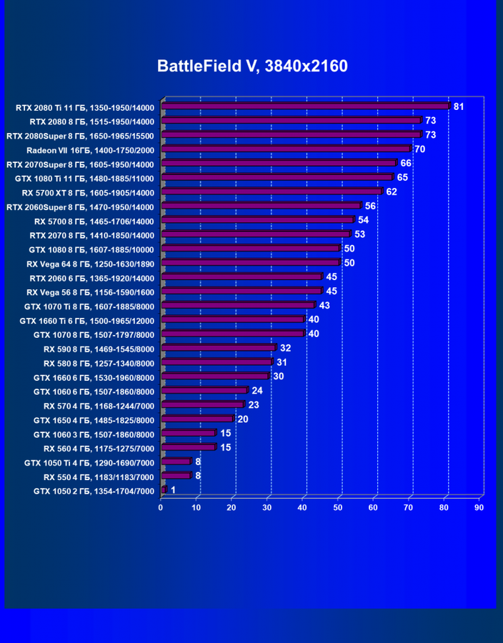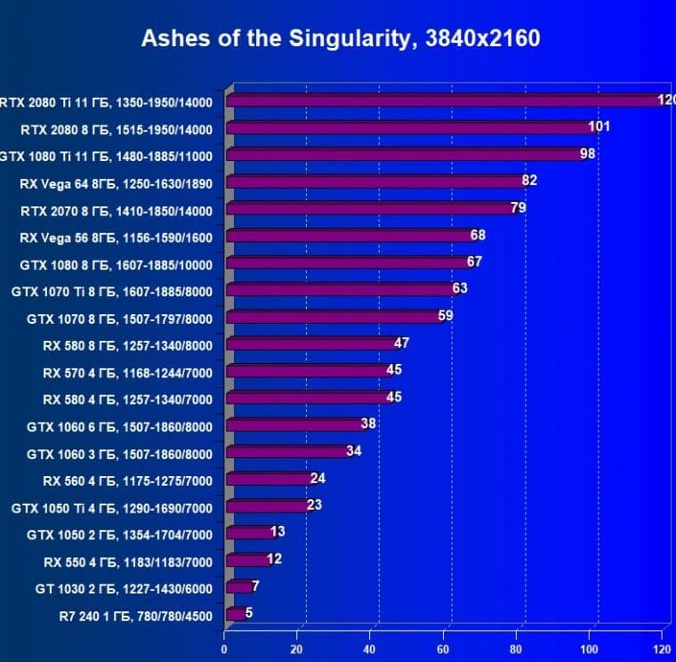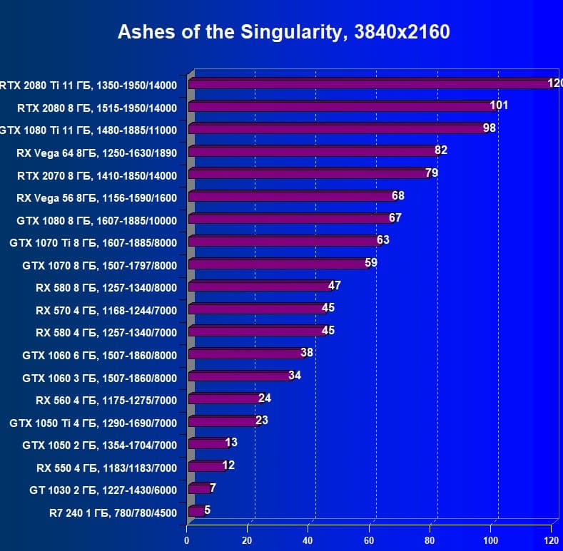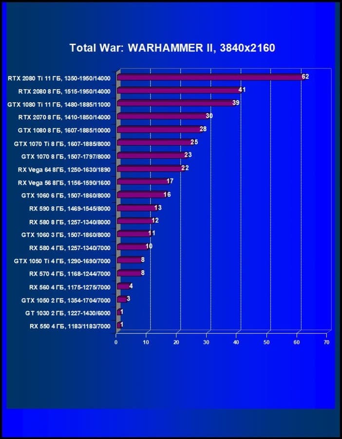 | 11 | RTX 2070 8 ГБ, 1710—1850/14000 | 41 | 252 | 62 000 |