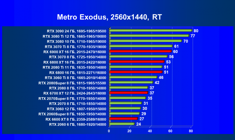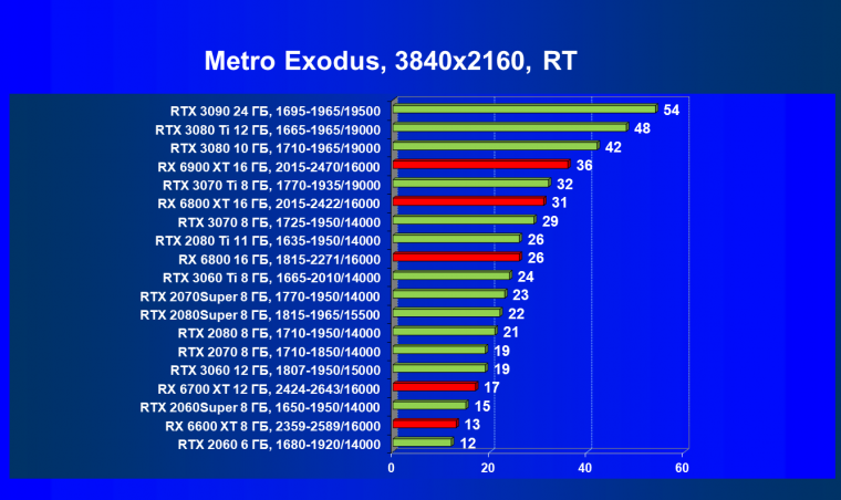 | 12 | RX 6900 XT 16 ГБ, 2015—2470/16000 | 38 | 535 | 139 000 |