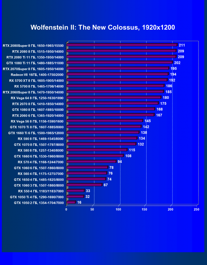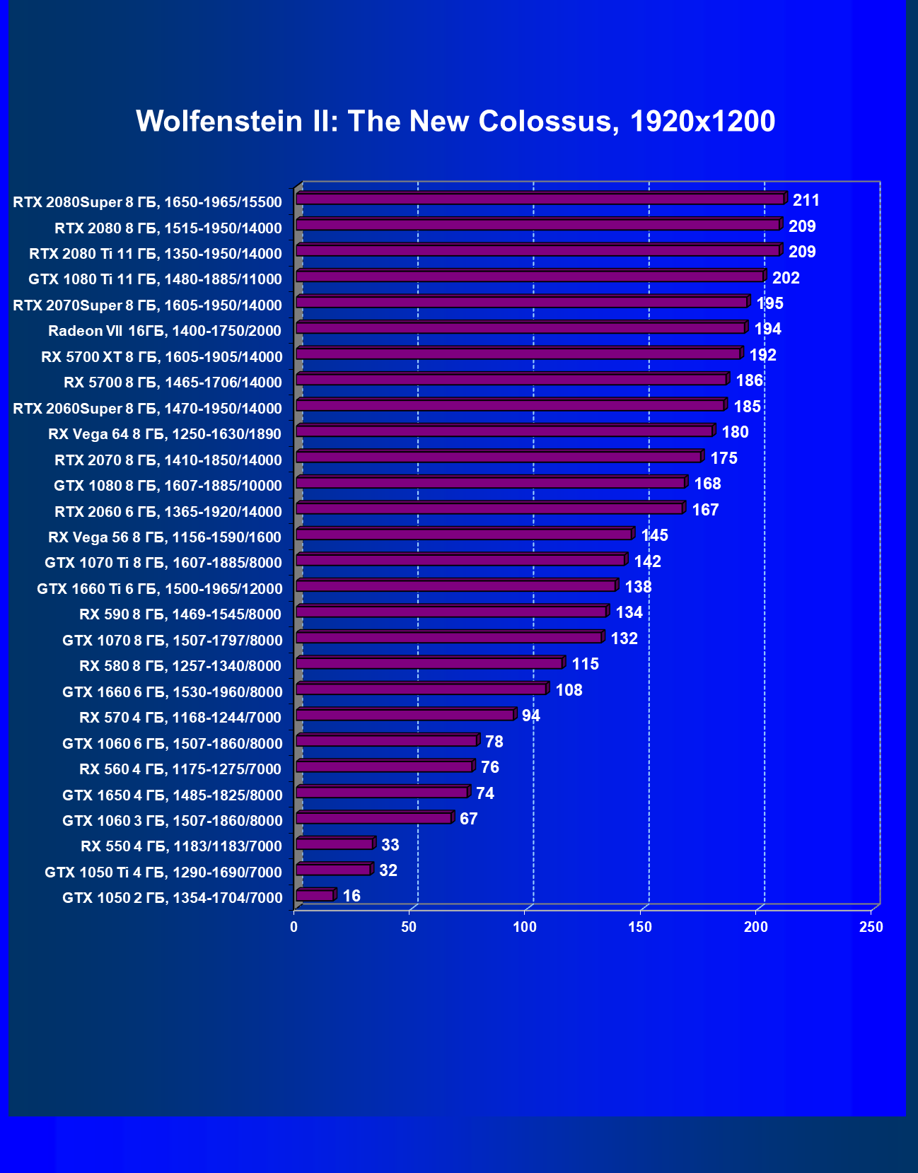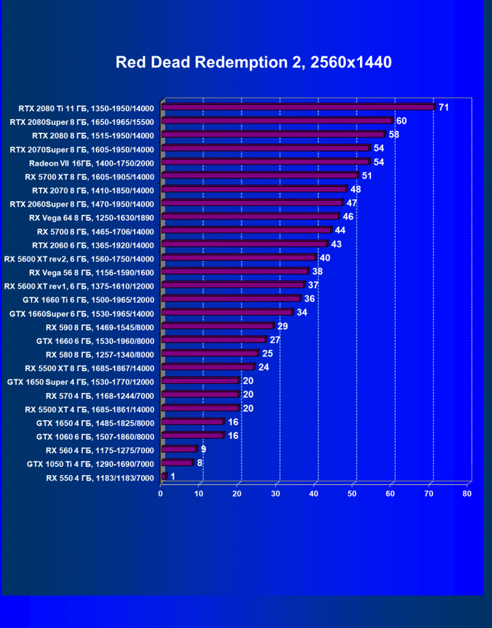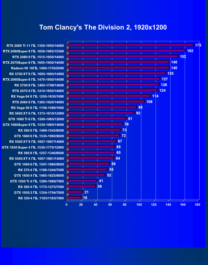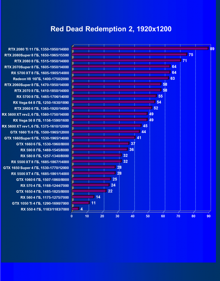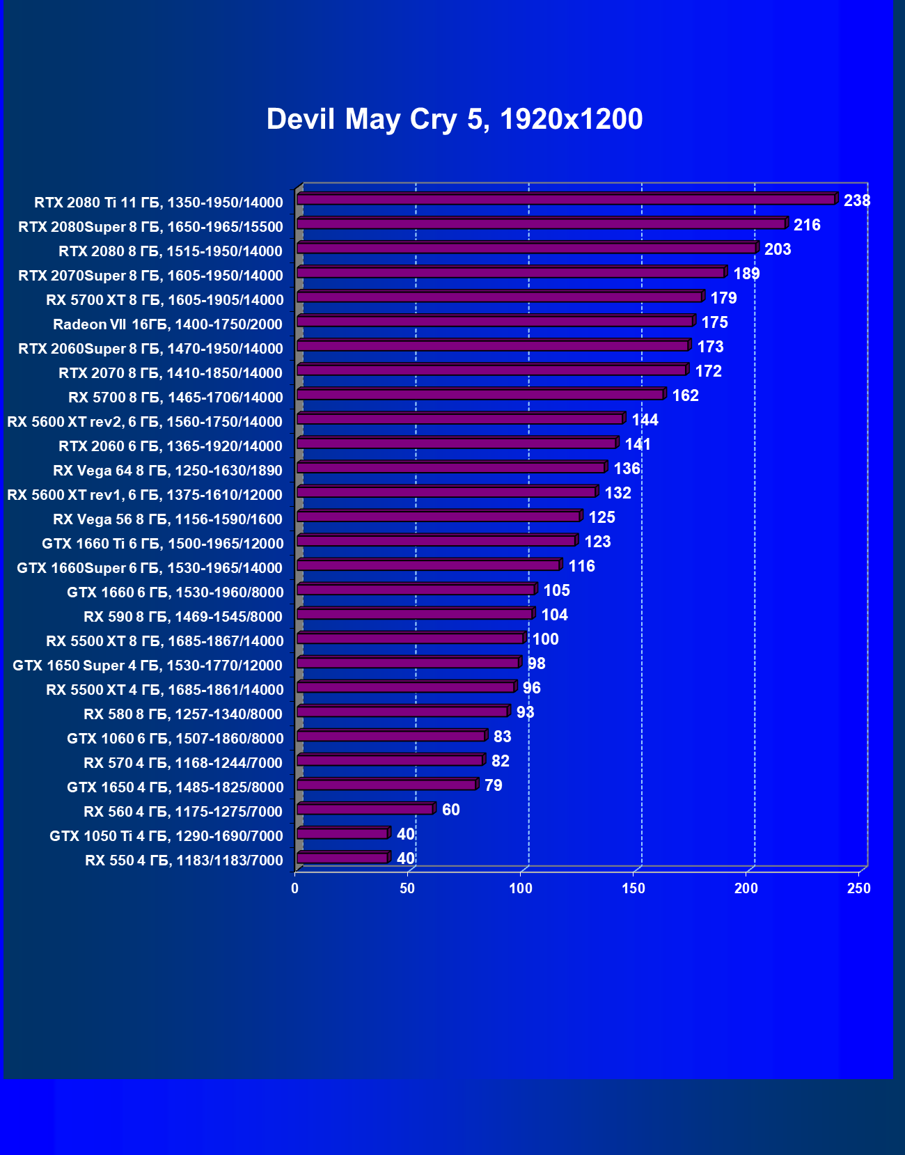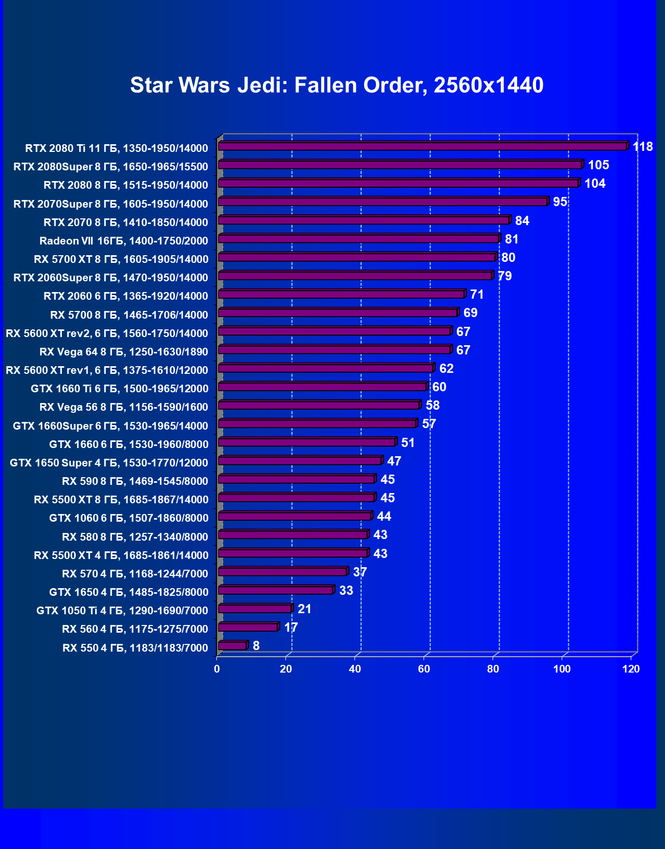 | 15 | RX 5700 XT 8 ГБ, 1755—1905/14000 | 33 | 251 | 75 000 |