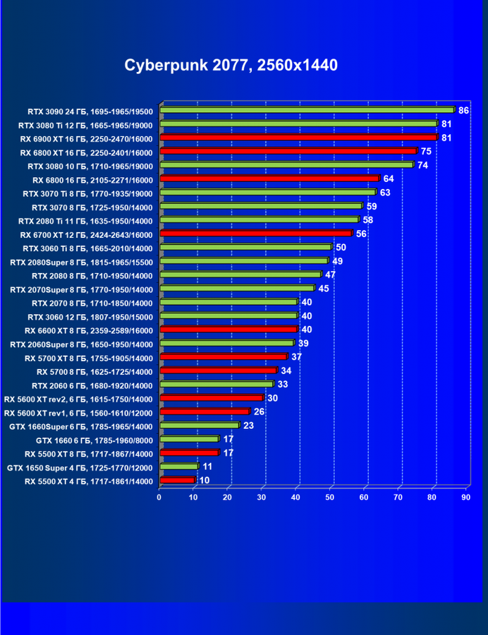 | 16 | RX 6800 16 ГБ, 1815—2271/16000 | 33 | 440 | 135 000 |