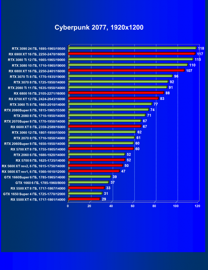 | 17 | RX 6800 XT 16 ГБ, 2015—2422/16000 | 14 | 195 | 137 000 |
