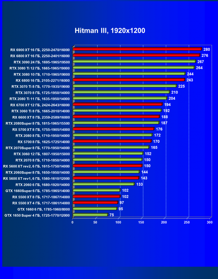 | 13 | RX 6900 XT 16 ГБ, 2015—2470/16000 | 21 | 290 | 139 000 |