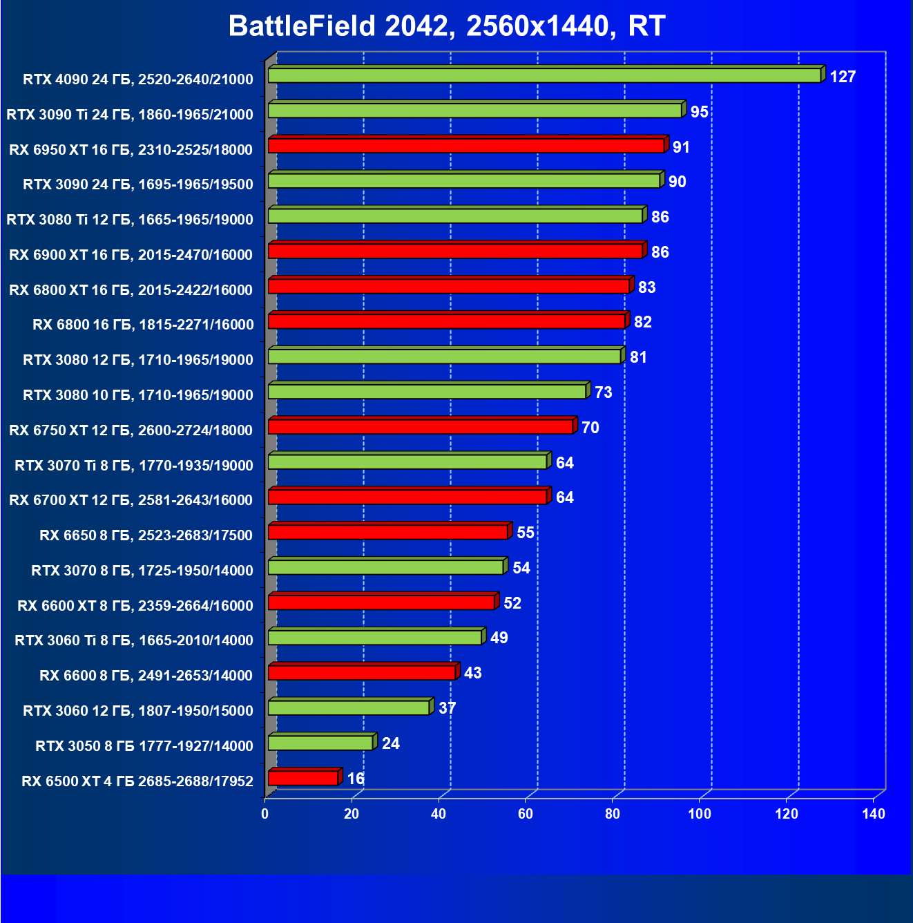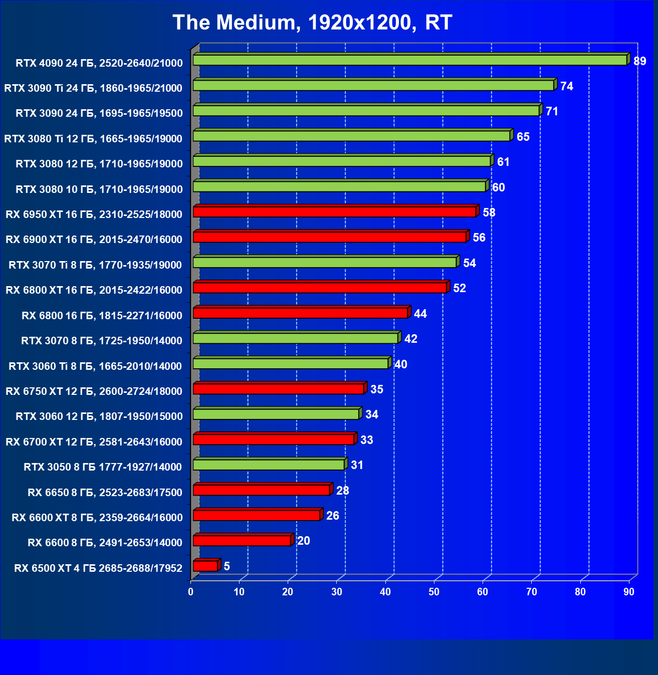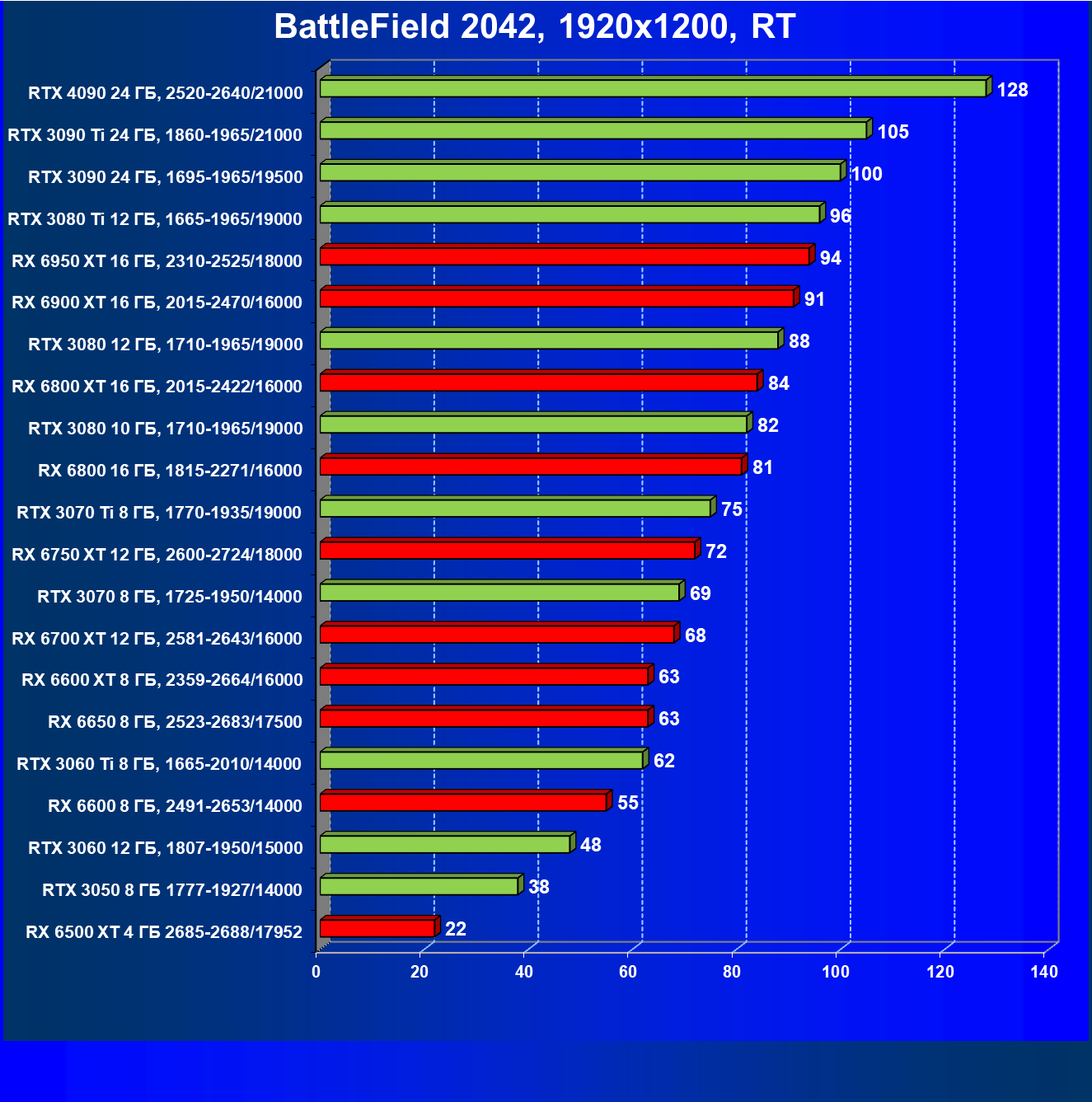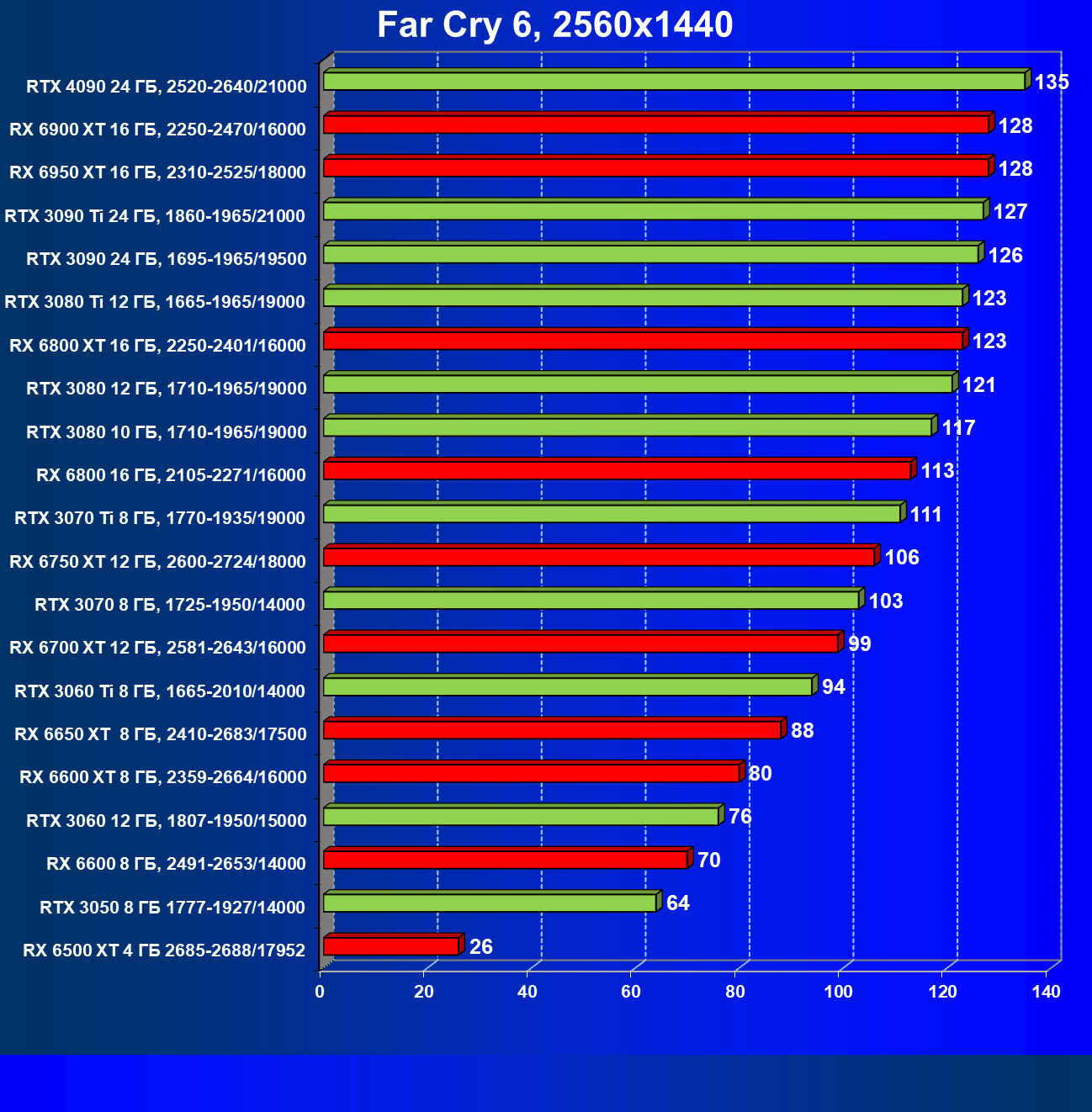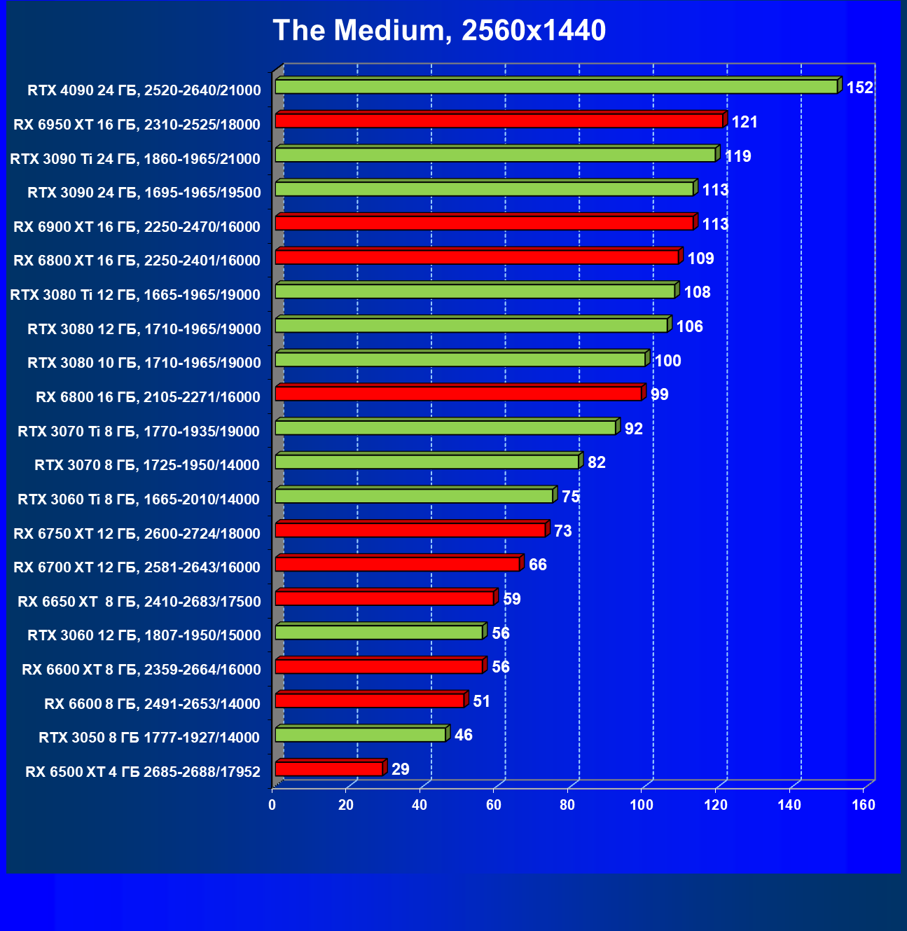 Все упомянутые видеокарты подойдут и для игр на мониторах с более массовым разрешением Full HD. При включении трассировки лучей совместно с DLSS или FSR полный комфорт обеспечивают карты уровня Radeon RX 6600 XT и GeForce RTX 3060, и даже GeForce RTX 3050 может подойти. А вот для Radeon RX 6500 XT включение RT будет смертельным.