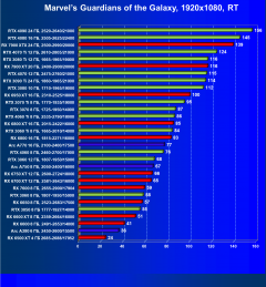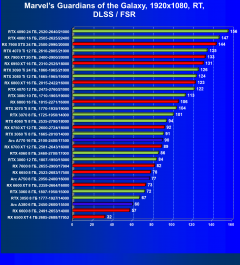 Ускорители семейства Radeon RX 6000 при включении RT в разрешении 4K смотрятся гораздо бледнее, обычно в их случае можно рассчитывать лишь на комфорт в разрешении 2.5K (да и то с включением FSR/XeSS). Даже Radeon RX 6950 XT с трудом справляется с играми в разрешении 4K с трассировкой лучей, его спасает только поддержка в игре технологий FSR/XeSS.