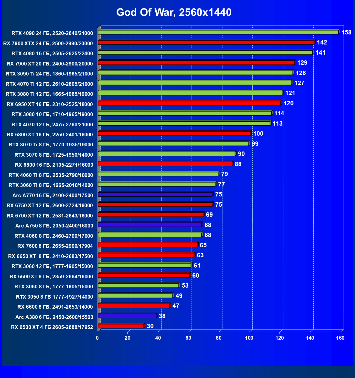 В рейтинге полезности для разрешения 2560×1440 лидером является ускоритель Arc A750 8 ГБ из-за достаточного объема памяти для такого разрешения и оптимальной цены. На втором месте оказался Arc A770. На третьем месте — GeForce RTX 4060.