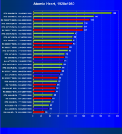 В разрешении Full HD можно ограничиться моделями GeForce RTX 3060, GeForce RTX 3050 (в его случае иногда придется снижать настройки графики) и Radeon RX 6600. В ряде случаев в очень сложных по графике играх придется подбирать ускорители на уровень выше (либо понижать настройки графики).